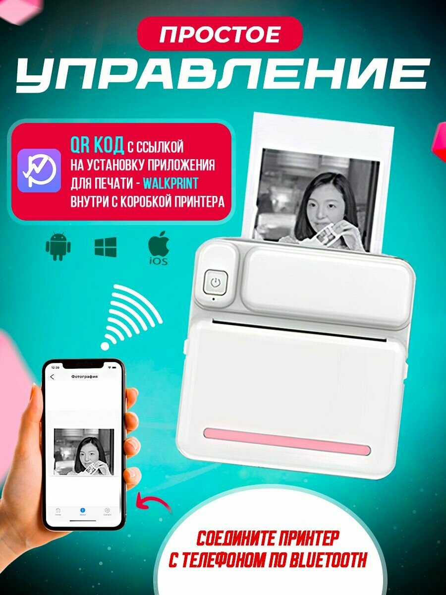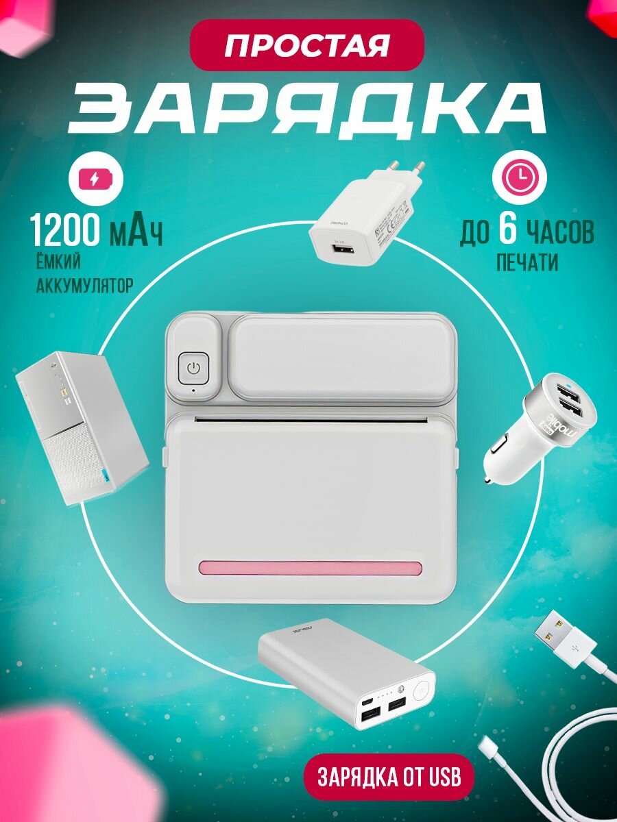 Беспроводной мини принтер для печати с телефона, карманный термопринтер, 0001-16-7, розовый информация: