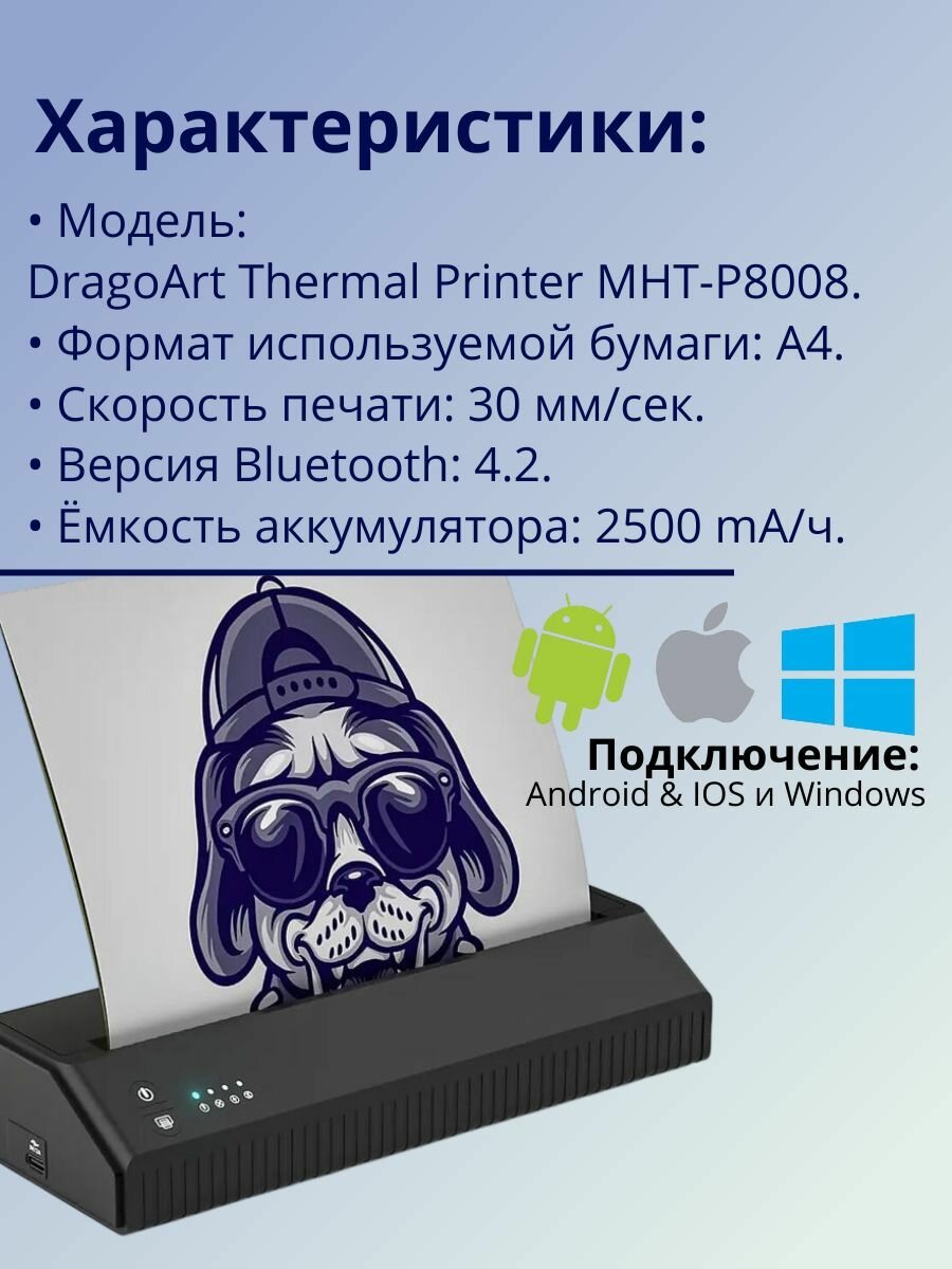 Портативный тату принтер (трансферный) DragoArt Thermal Printer информация: