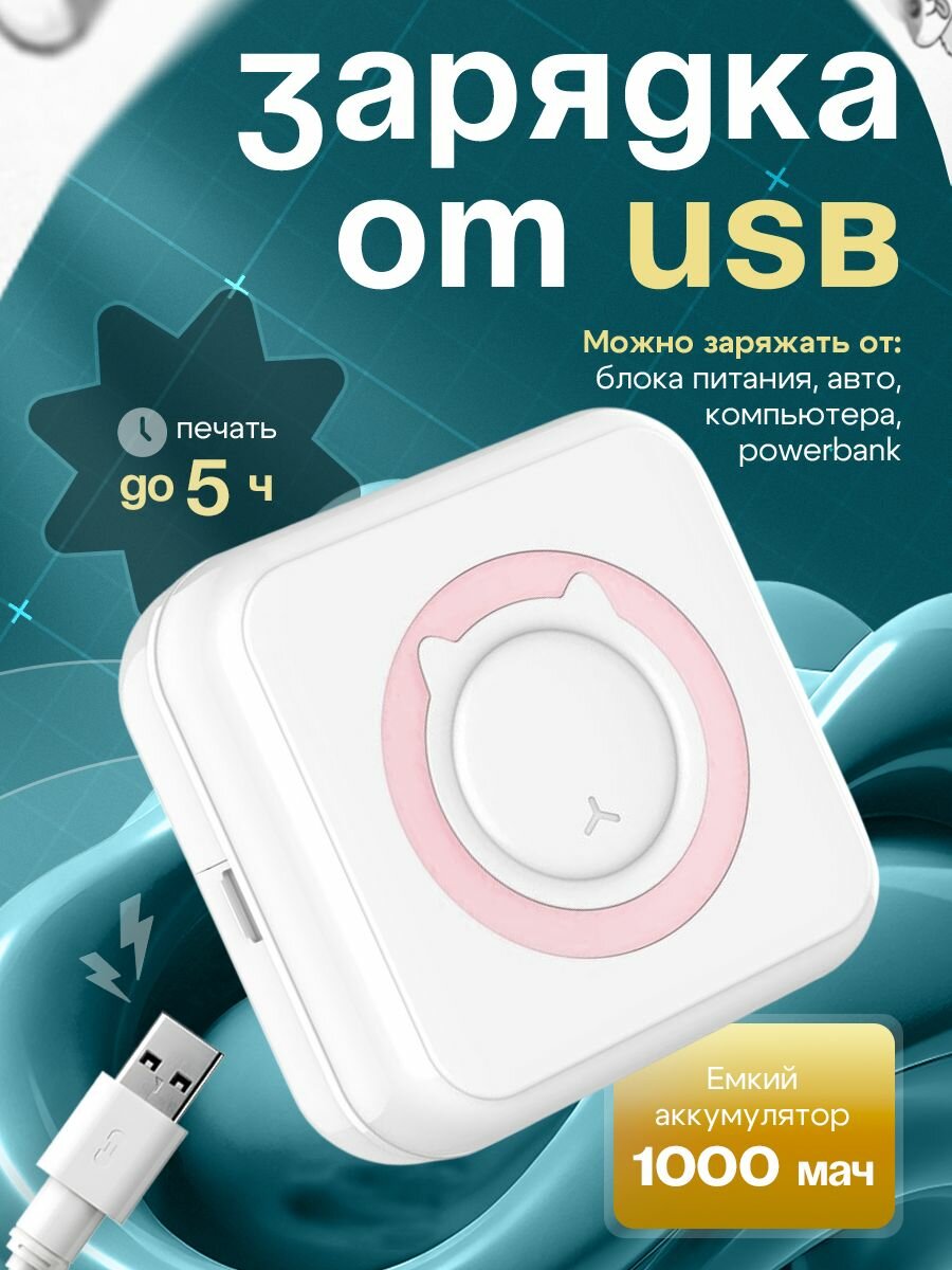 Беспроводной мини принтер для печати с телефона, карманный термопринтер, 0001-16-10, розовый информация: