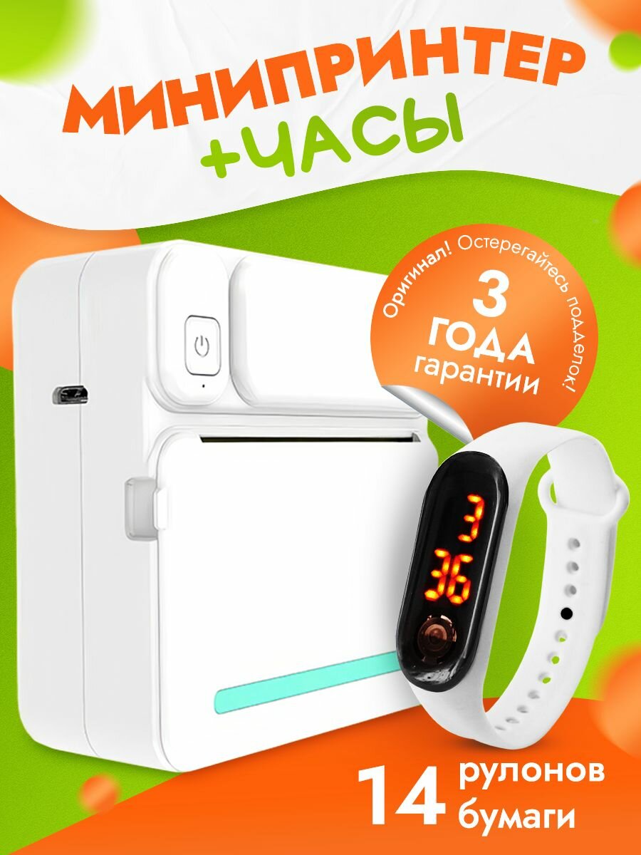 Отзывы на Мини Принтер с Часами, Беспроводной, Не нужно заправлять, Для наклеек Kids Club