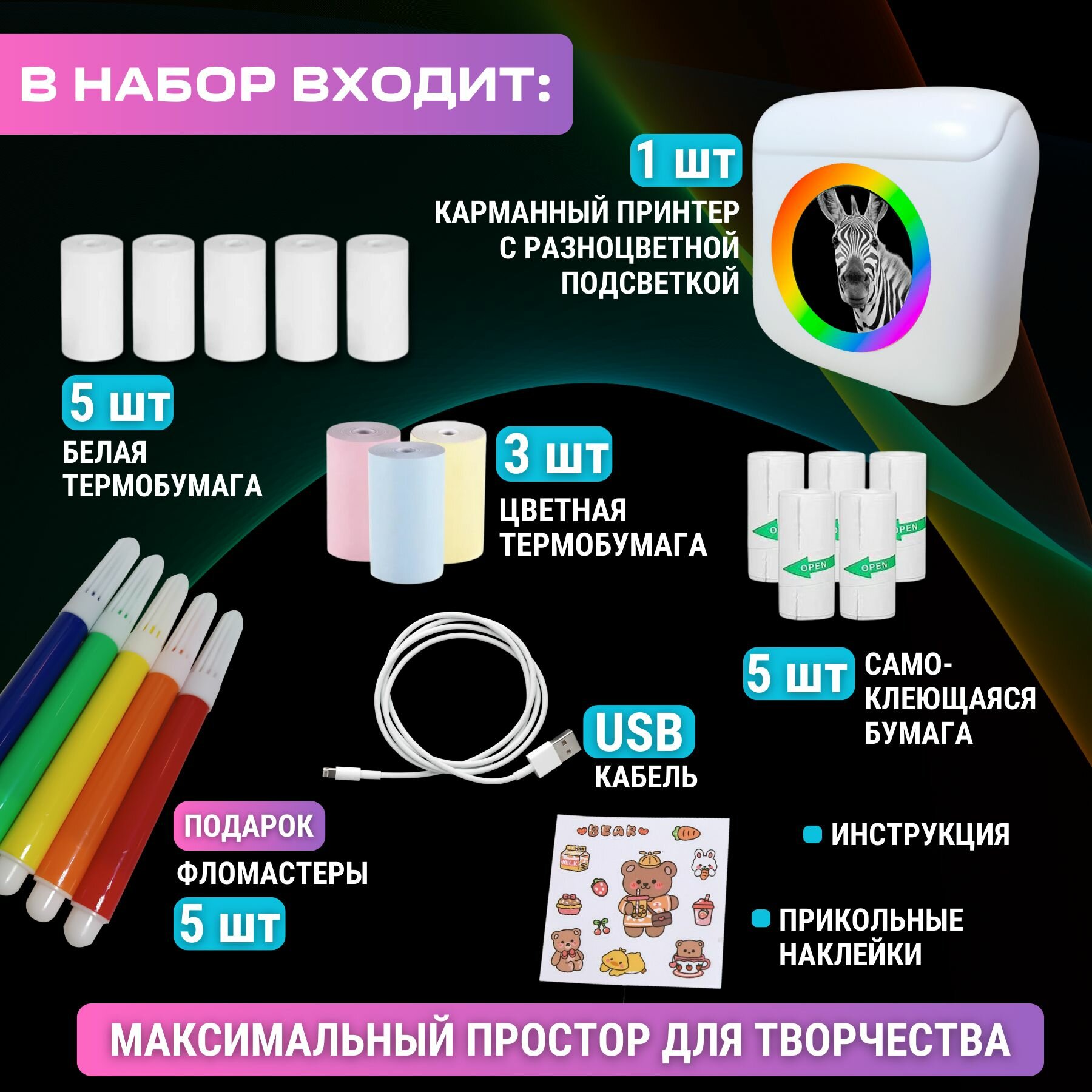 Портативный маленький термопринтер детский для телефона; Карманный беспроводной мини принтер для фото, наклеек, стикеров информация: