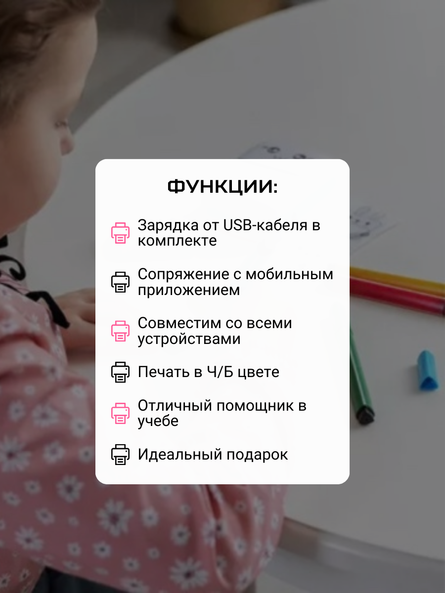 Беспроводной портативный мини-принтер для телефона, розовый информация: