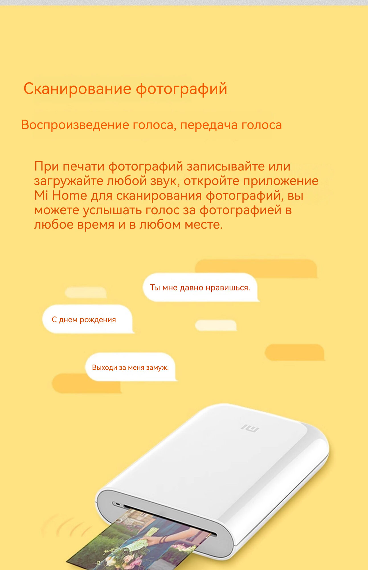 Xiaomi, карманный принтер, плюс 20 листов фотобумаги, 50×76 мм, 313×400 точек на дюйм, 45 секунд на страницу, белый информация: