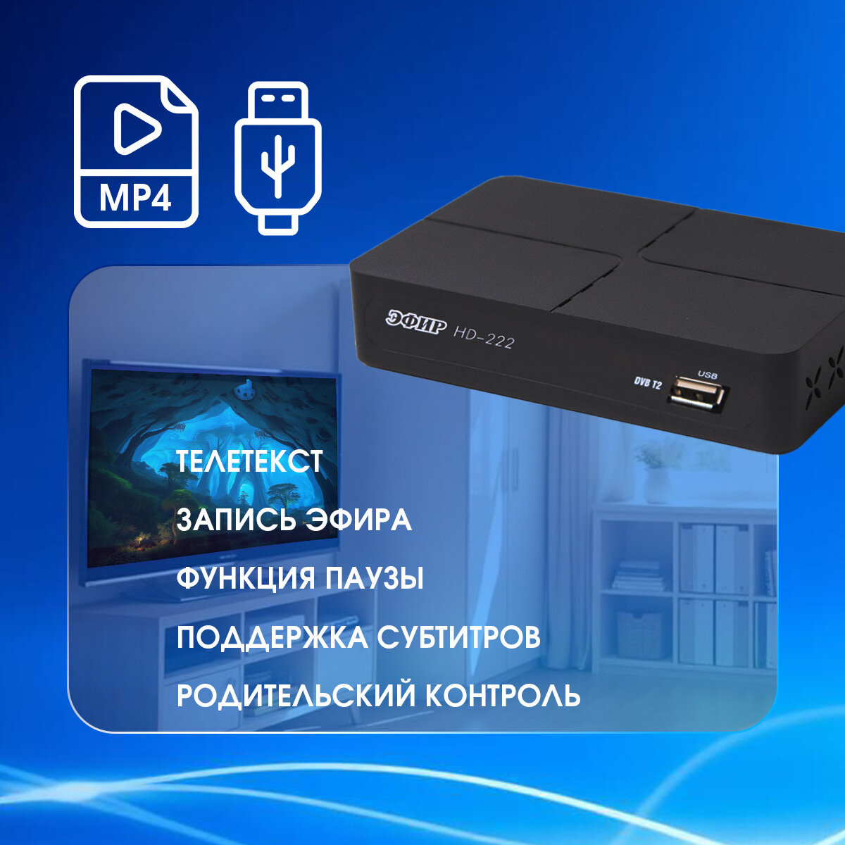 Приставка телевизионная для цифрового телевидения DVB-T2 HD-222 информация: