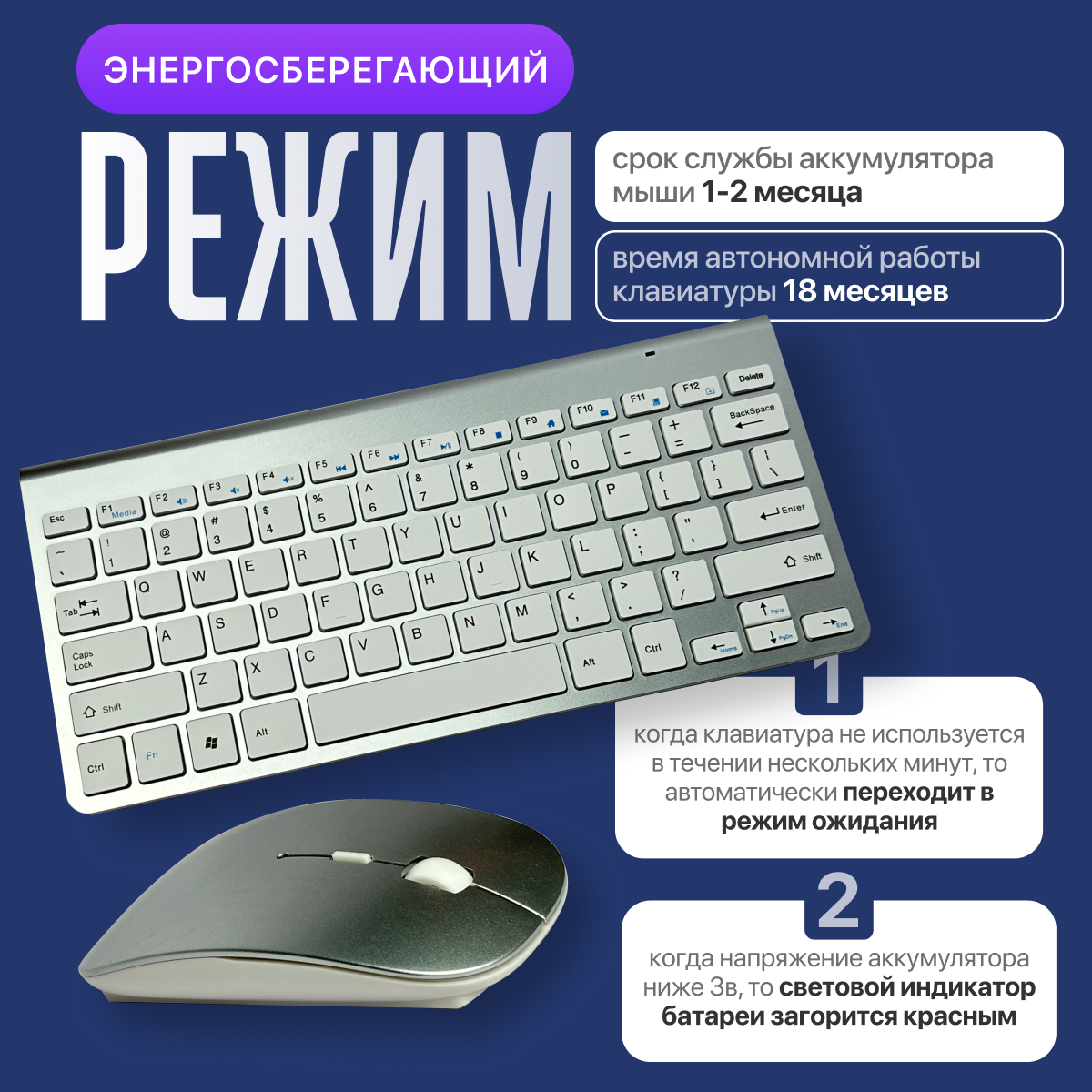 Беспроводная клавиатура и беспроводная мышь, ультратонкая, надежная информация: