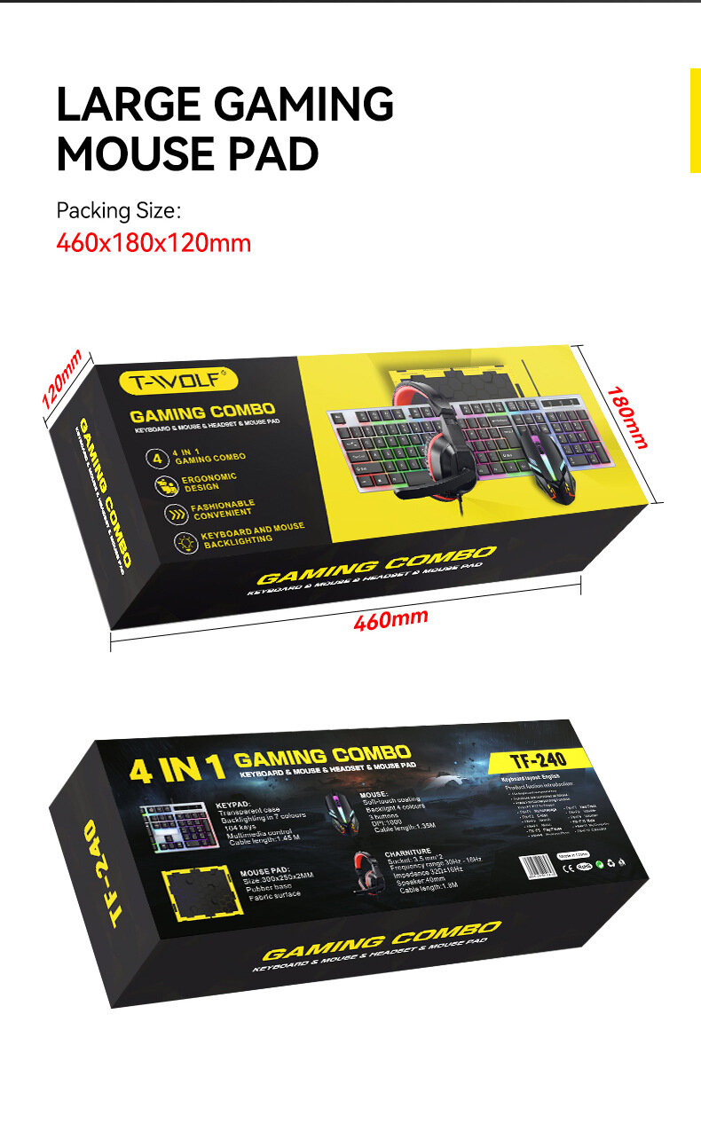 Игровой набор клавиатуры и мыши T-Wolf Thunder Wolf TF240, USB, подсветка, черный информация: