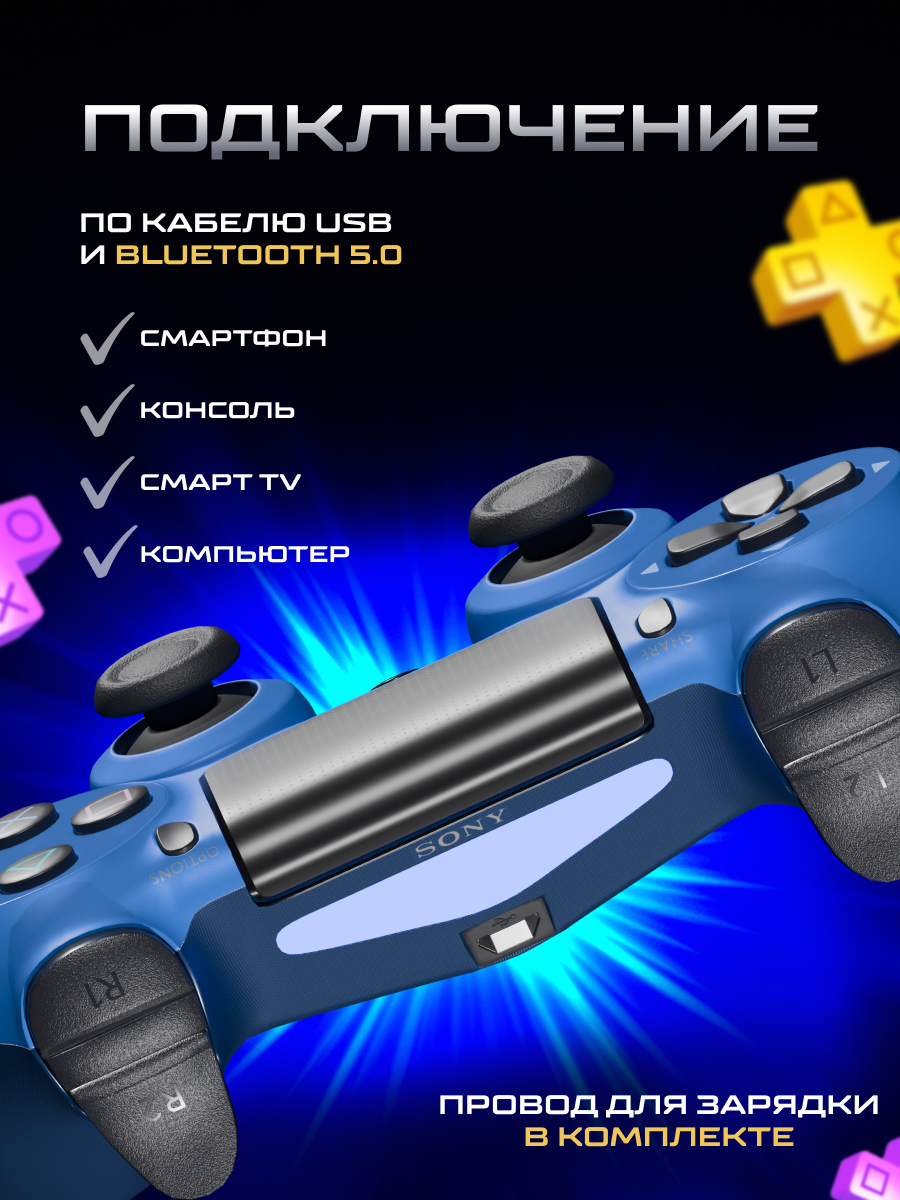 Джойстик / геймпад беспроводной для PS, компьютера, телефона, ПК. Синий. информация: