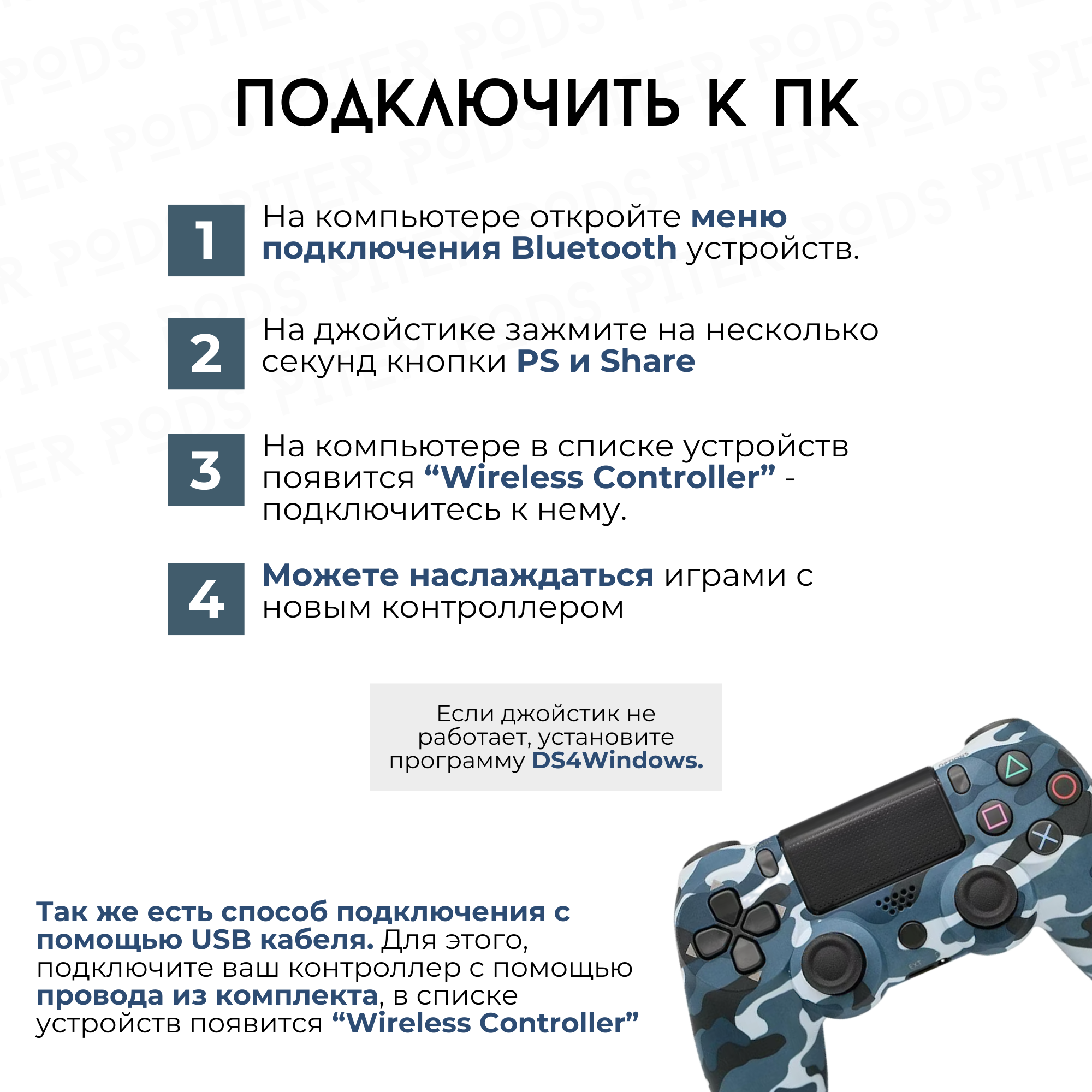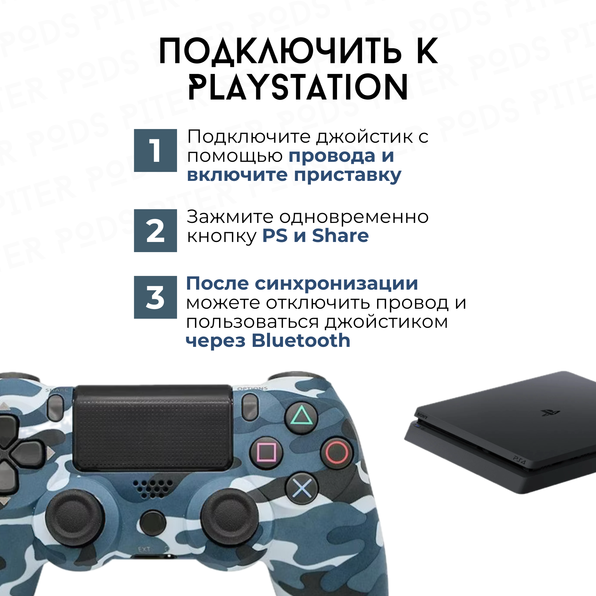 Беспроводной геймпад для PS4 с зарядным кабелем, Камуфляж Синий / Bluetooth / Джойстик для PS и ПК информация: