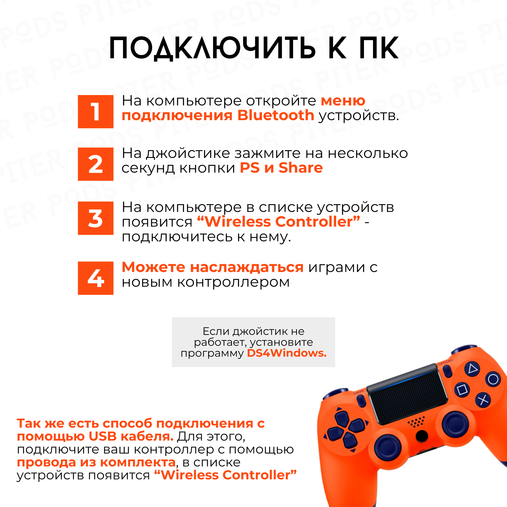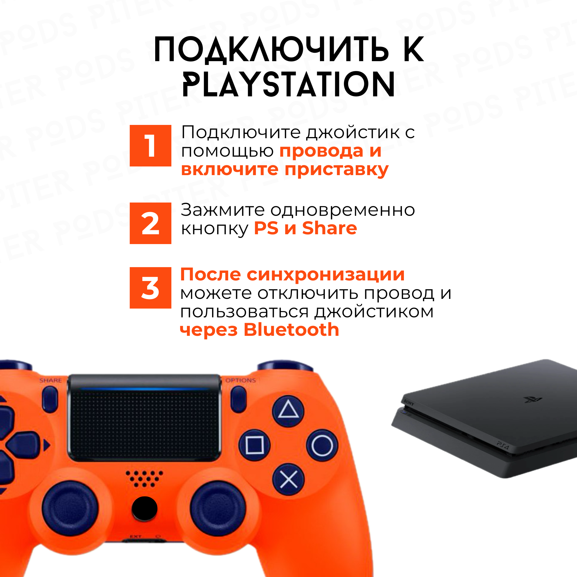 Беспроводной геймпад для PS4 с зарядным кабелем, Оранжевый / Bluetooth / Джойстик для PS и ПК информация: