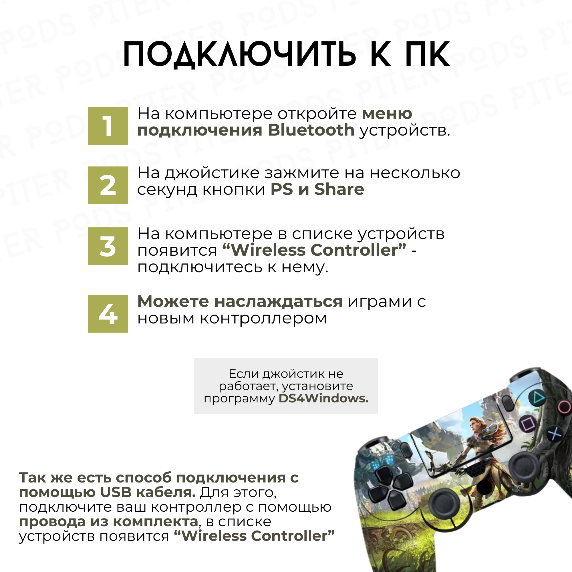 Беспроводной геймпад для PS4 с зарядным кабелем, HORIZON / Bluetooth / Джойстик для PS и ПК информация: