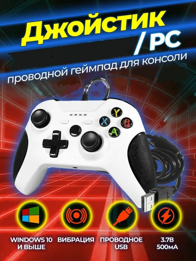 Проводной геймпад джойстик для игровой приставки и компьютера ПК, белый/черный информация: