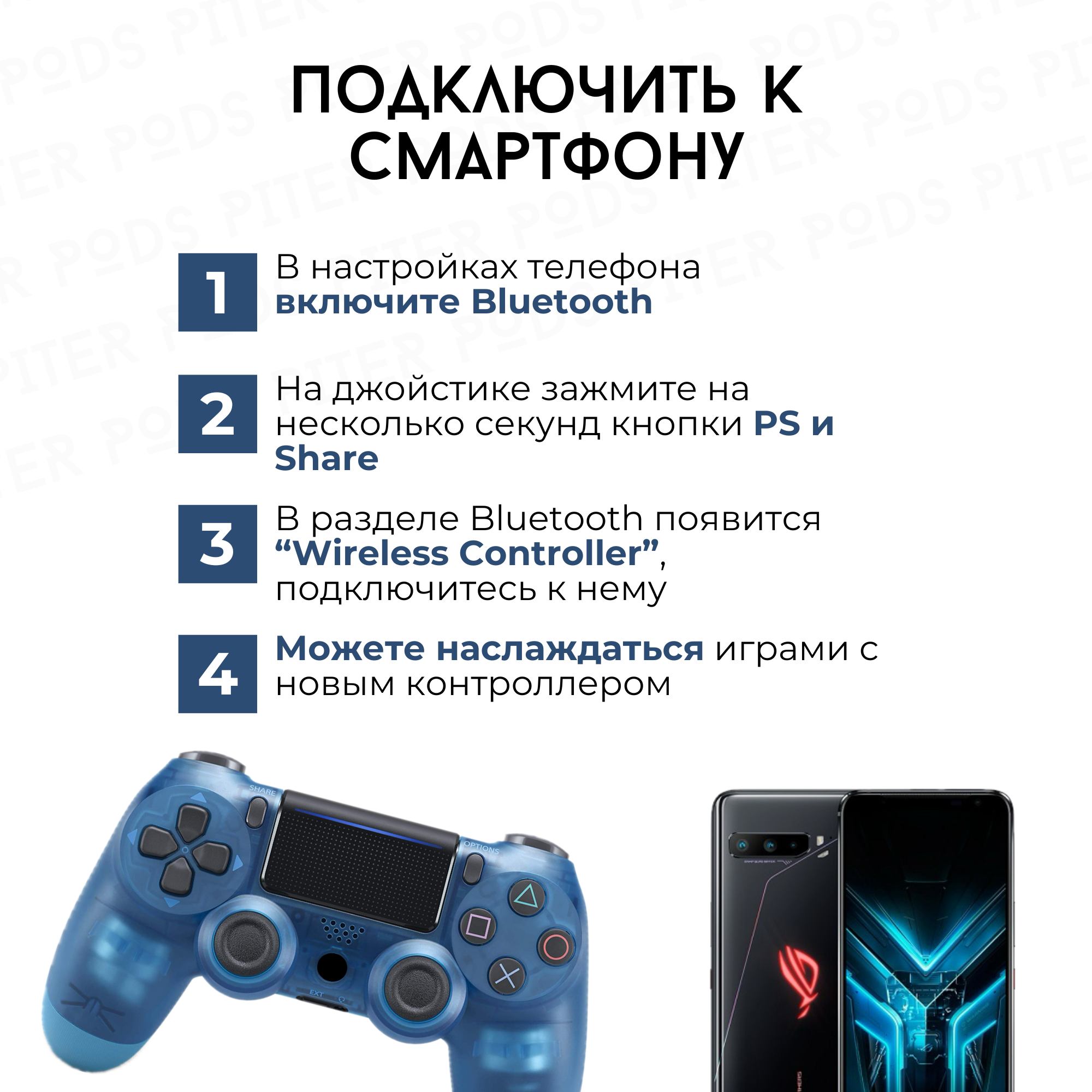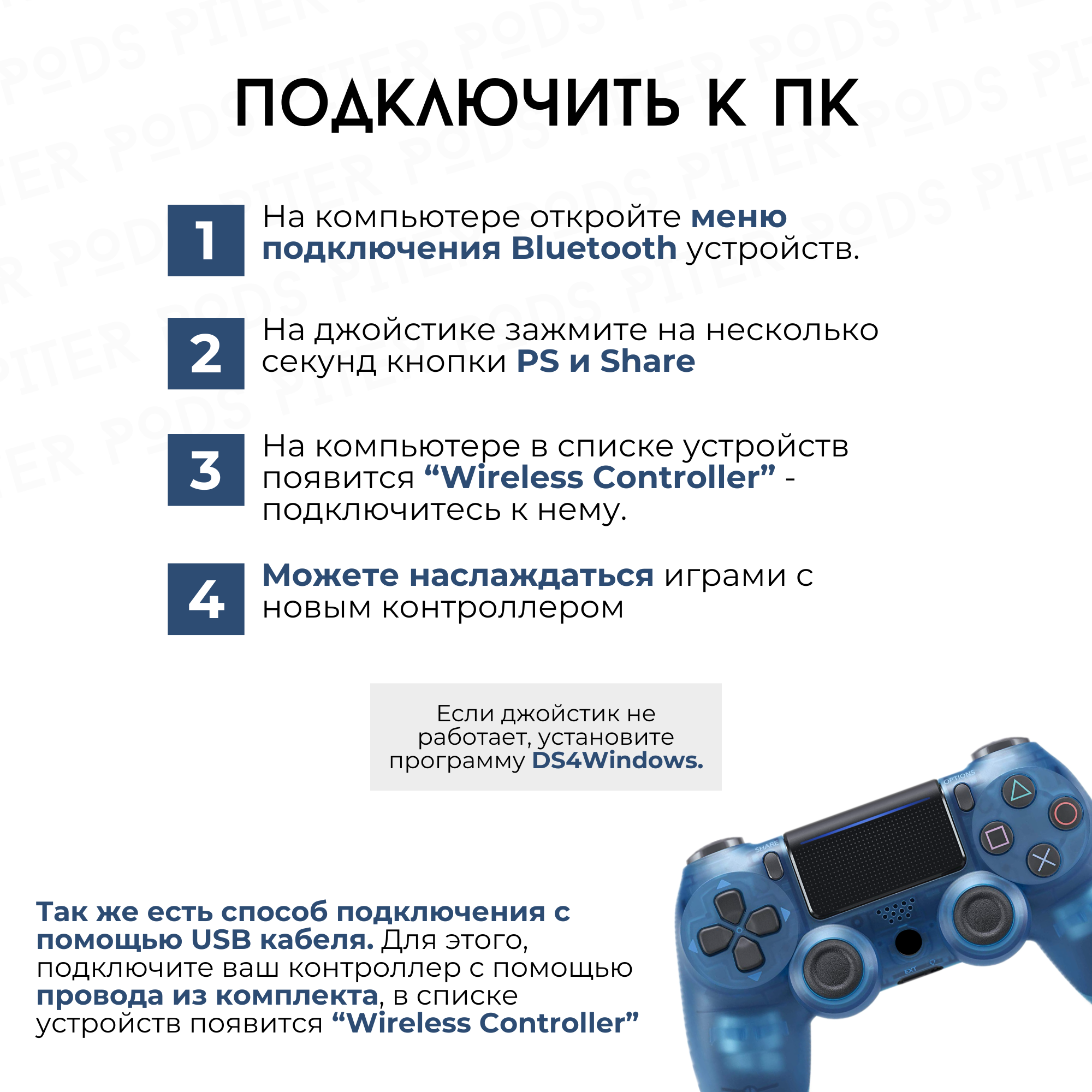 Беспроводной геймпад для PS4 с зарядным кабелем, Синий-Кристалл / Bluetooth / Джойстик для PS и ПК информация: