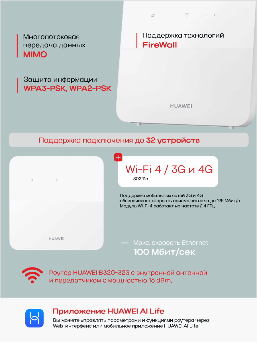 Маршрутизатор HUAWEI4G CPE 5S 300MBPS B320-323, белый информация: