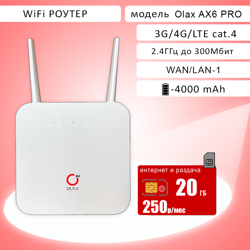 Wi-Fi роутер OLAX AX6 PRO I сим карта с безлимитным интернетом и раздачей за 750р/мес