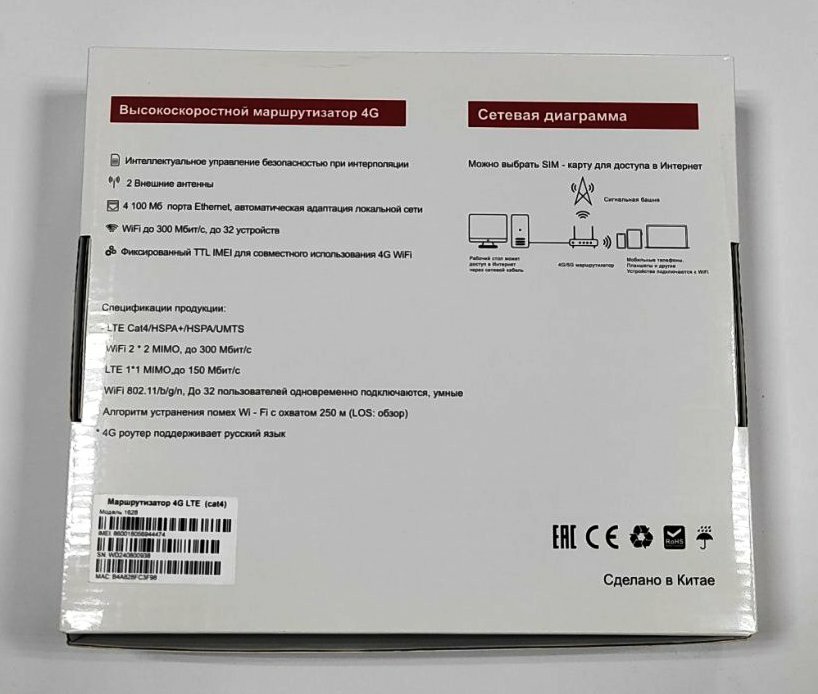 4g + WI-FI маршрутизатор VEMO B628 (cat4) информация:
