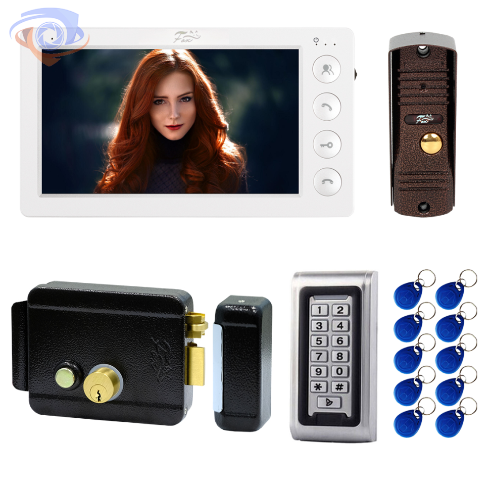 10 цен на Видеодомофон для дома с электромеханическим замком на калитку, кодовой панелью и брелками / монитор Fox 7" (белый)