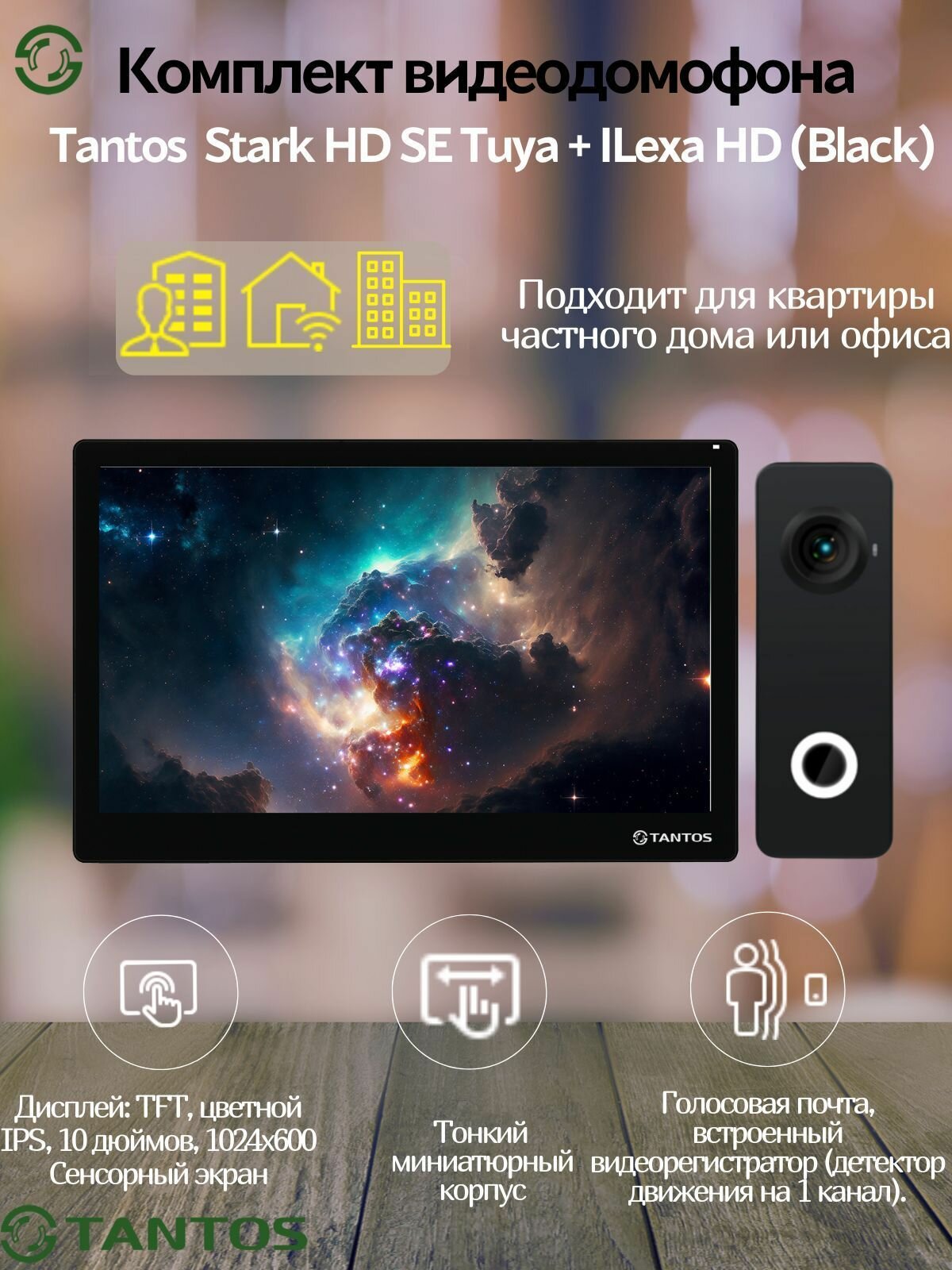 Комплект видеодомофона Tantos Stark HD SE Tuya + Tantos ILexa HD (Black) информация: