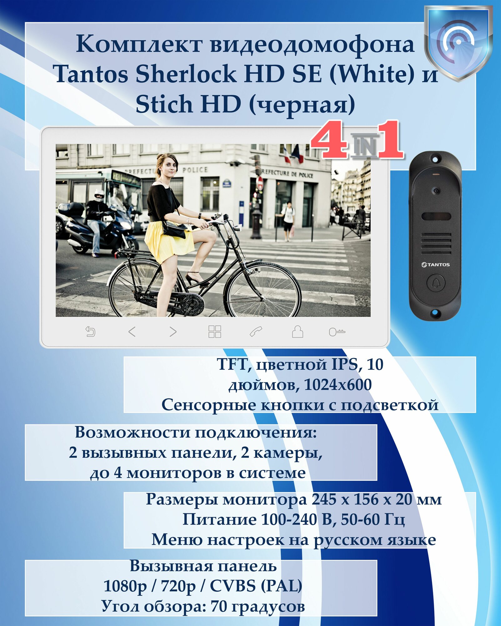 10 цен на Комплект видеодомофона Tantos Sherlock HD SE (White) и Stich HD (черная)