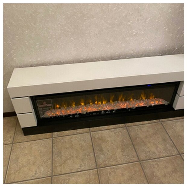 Линейный электрокамин Royal Flame Line WT с очагом Vision 60 LED, кристаллы, обогрев, пульт ДУ (линейный электрический камин)