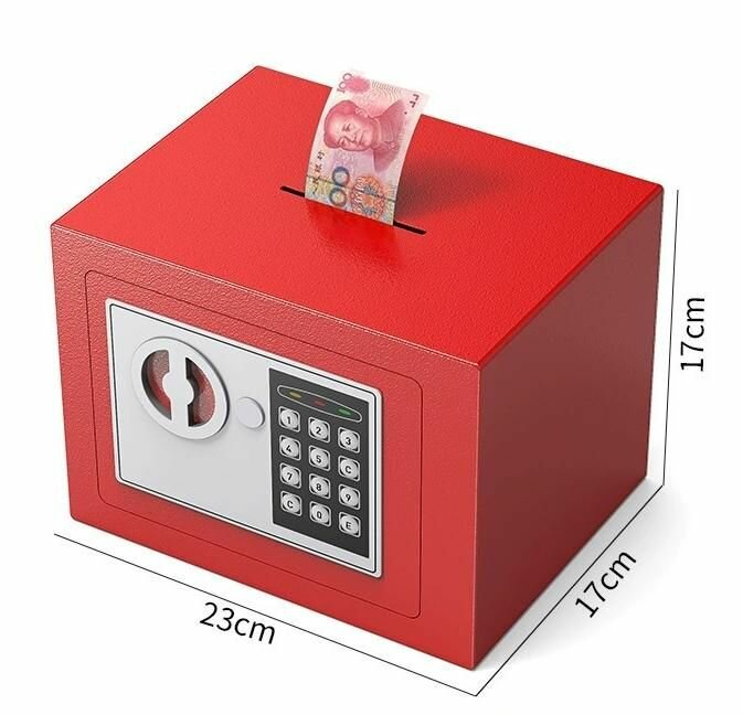 Сейф, домашний, встраиваемый, стальной, 23x17x17 см, красный информация: