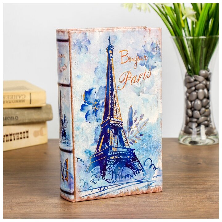 Отзывы на Шкатулка книга-сейф «Эйфелева башня в нежно-голубых тонах», дерево, искусственная кожа, 21×13×5 см