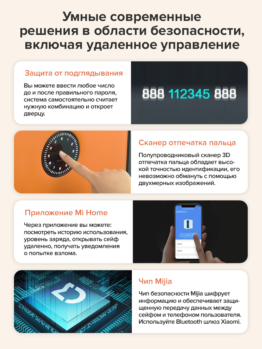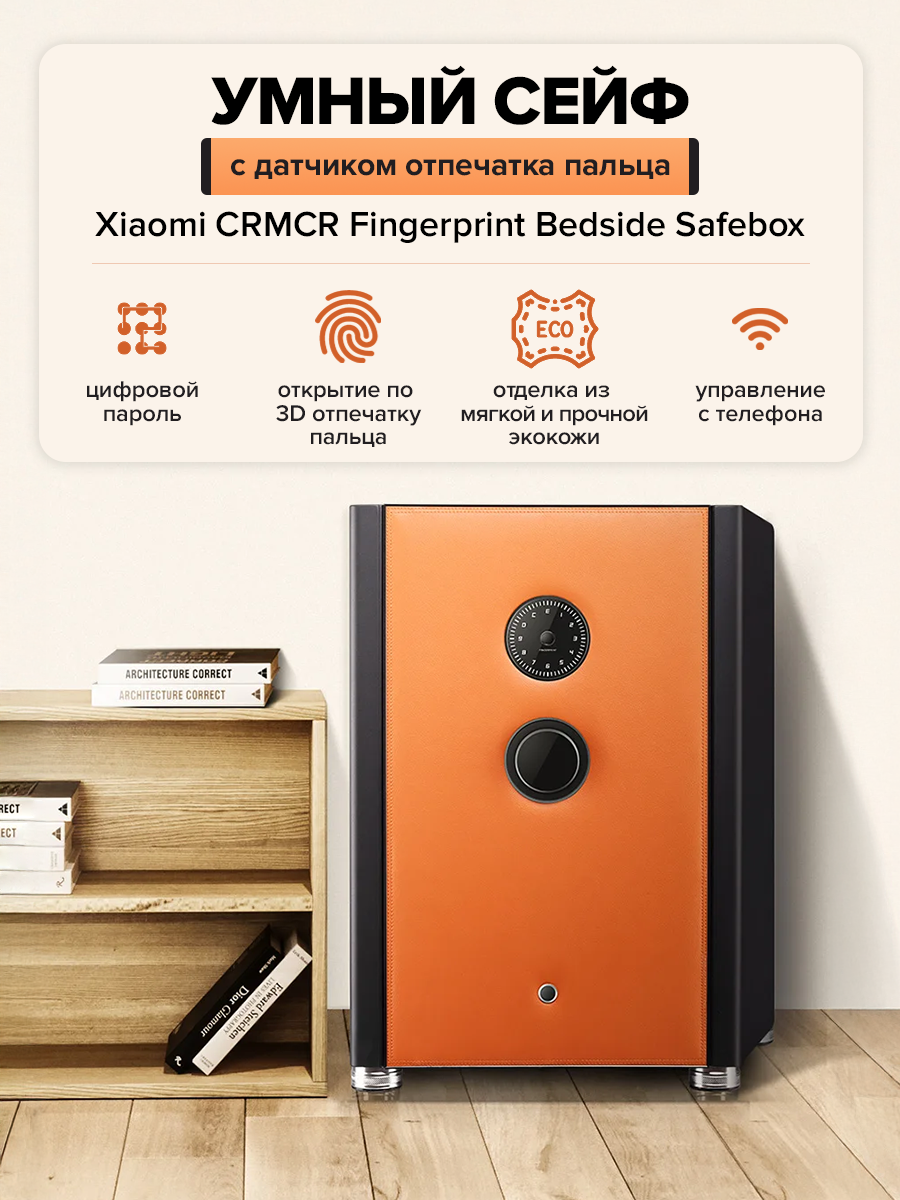 Умный электронный сейф со сканером отпечатка пальца Xiaomi CRMCR Fingerprint Bedside Safebox Orange (BGX-X1-60IL) информация: