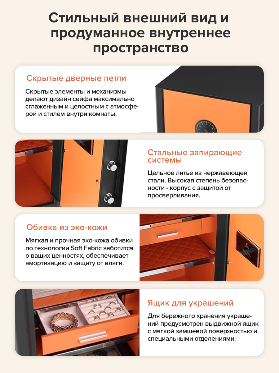 Цельностальной сейф, 3 слоя дополнительного пространства внутри, прочный и долговечный.