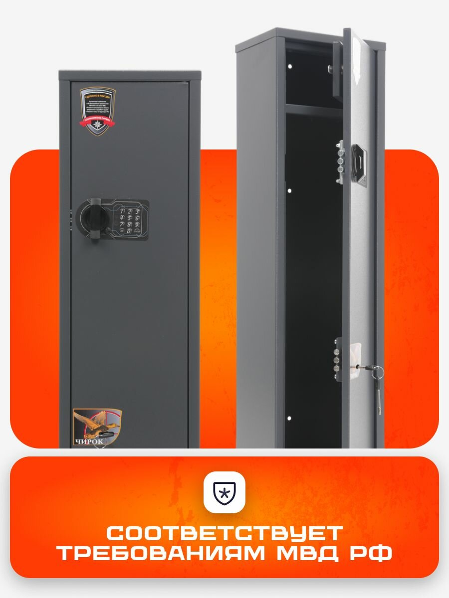 Сейф оружейный для ружья охотничьего Чирок на 1 ствол с кодовым замком и ключевым информация: