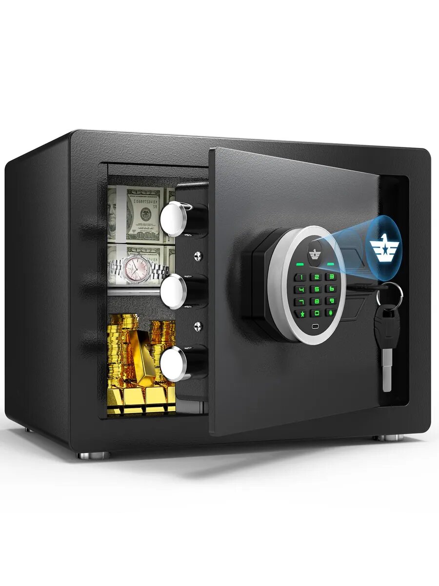 Цельностальной сейф, 3 слоя дополнительного пространства внутри, прочный и долговечный.