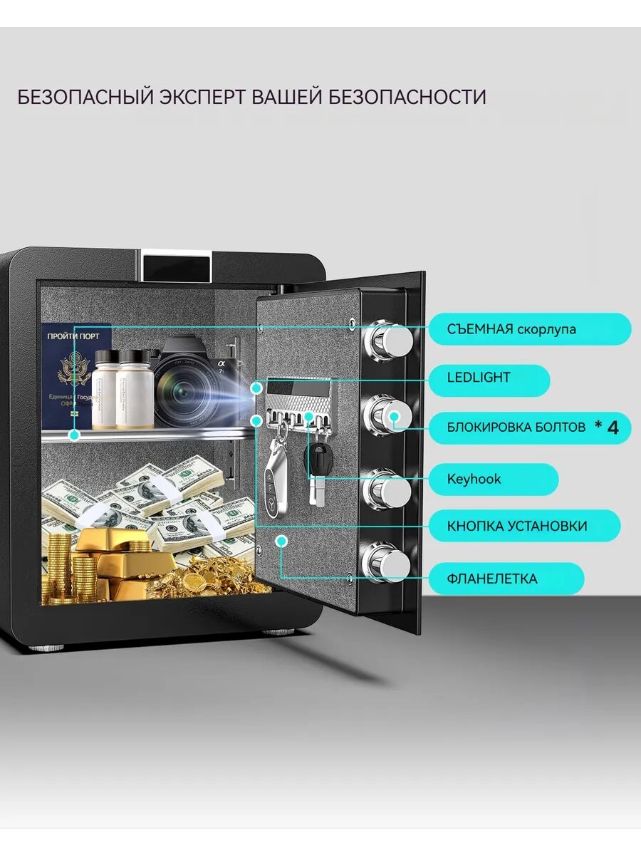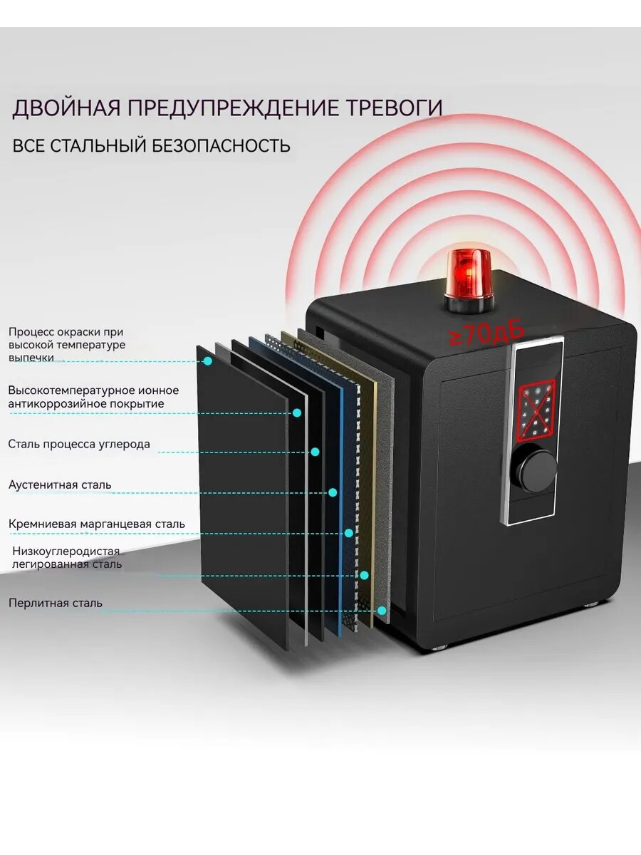 Цельностальной сейф, 3 слоя дополнительного пространства внутри, прочный и долговечный.