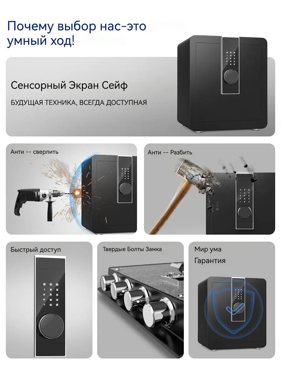 Цельностальной сейф, 3 слоя дополнительного пространства внутри, прочный и долговечный.