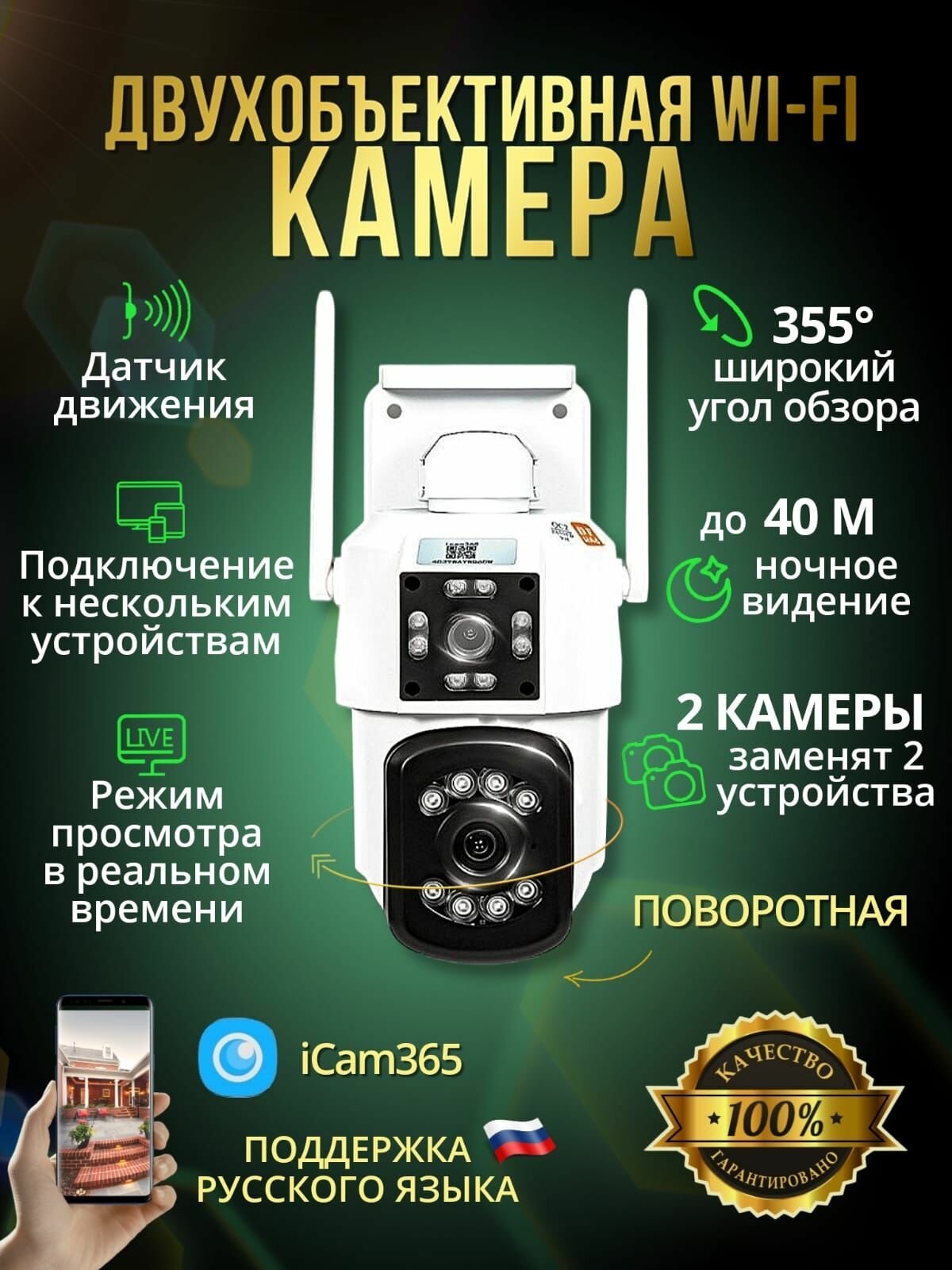 Уличная двухобъективная WI FI камера видеонаблюдения 4 шт 10 090 ₽