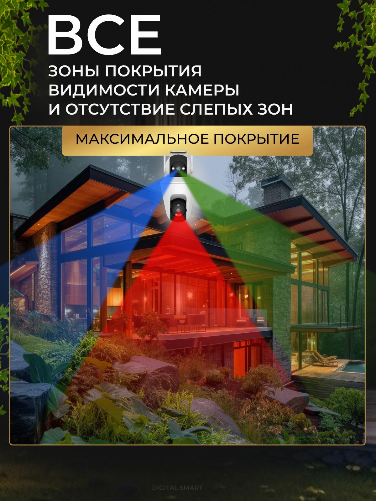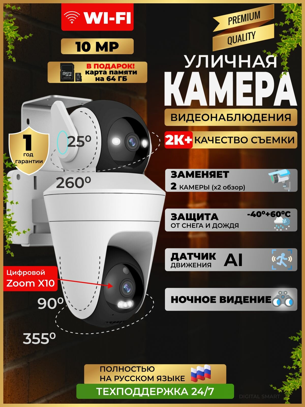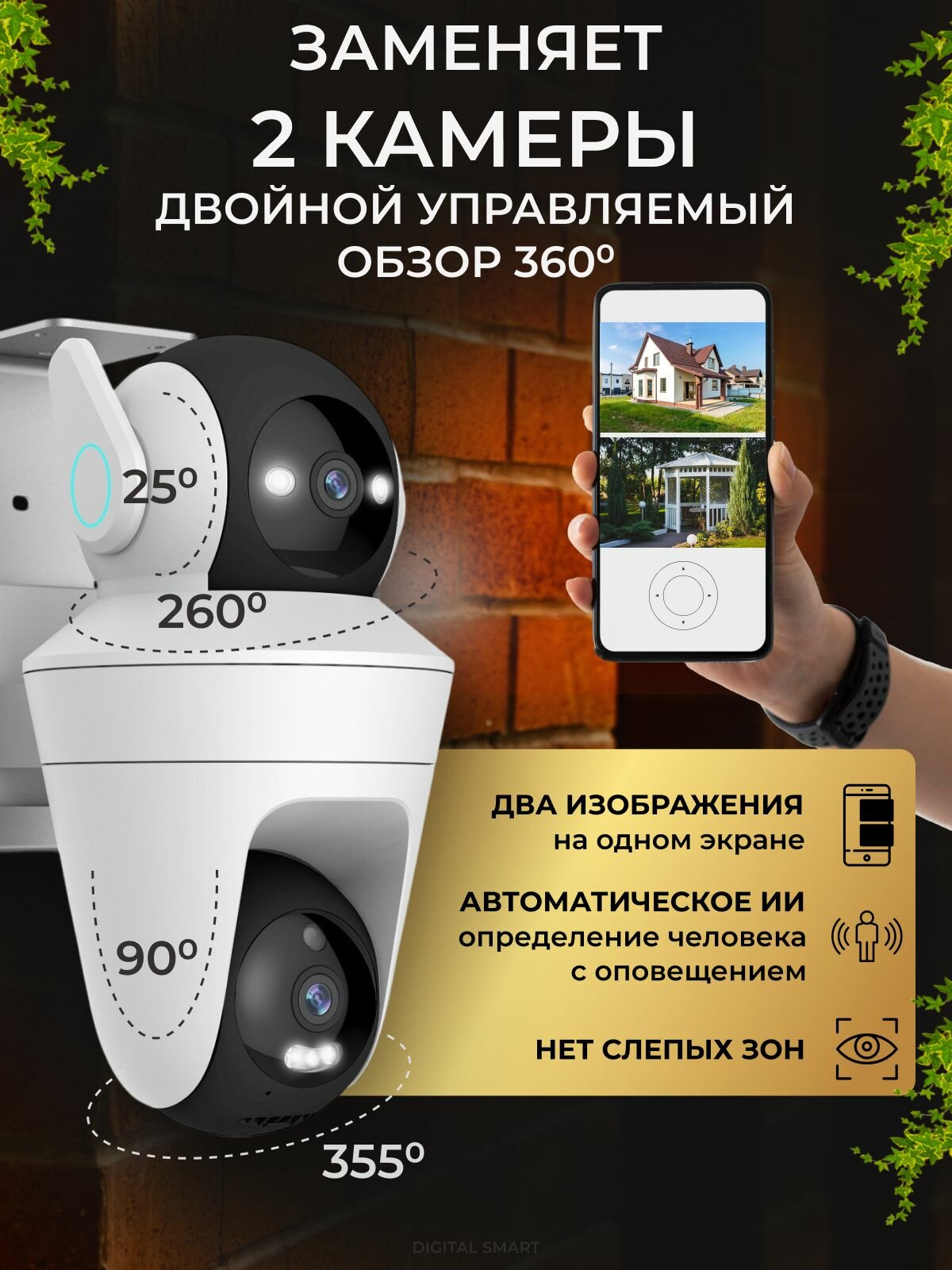 Камера видеонаблюдения уличная WiFi 10Мп, двойная, поворотная IP видеокамера с датчиком движения, режимом ночной съемки информация: