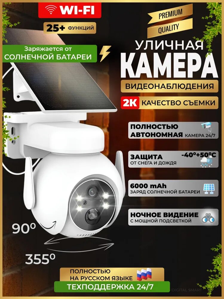 Камера видеонаблюдения уличная Wifi / Беспроводная IP видеокамера со встроенным аккумулятором и солнечной панелью информация: