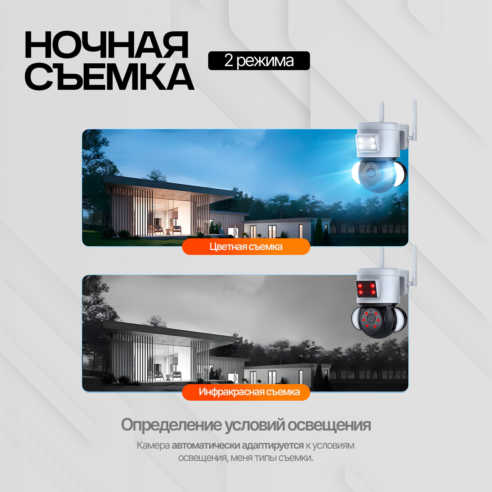 Беспроводная уличная камера видеонаблюдения с датчиками движения и ИК-подсветкой, двойная