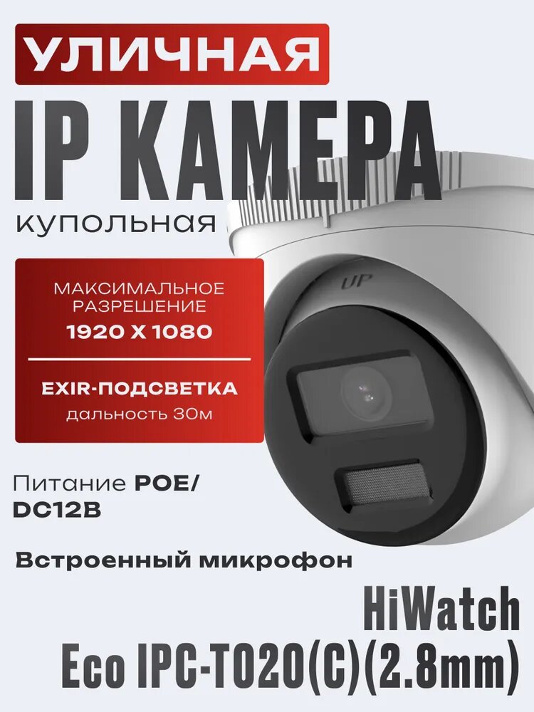 10 цен на 2Мп уличная IP-камера HiWatch IPC-T020(C)(2.8mm) с EXIR-подсветкой до 30м и встроенным микрофоном