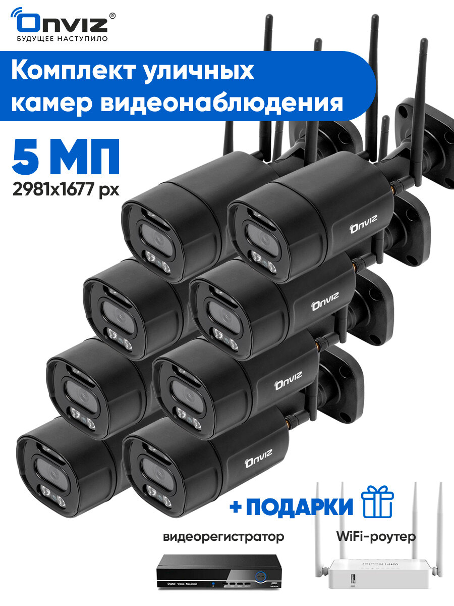 Отзывы на Комплект 8 уличных беспроводных WiFi IP камер 5Мп видеонаблюдения OnvizU550 с детекцией человека, динамиком, микрофоном
