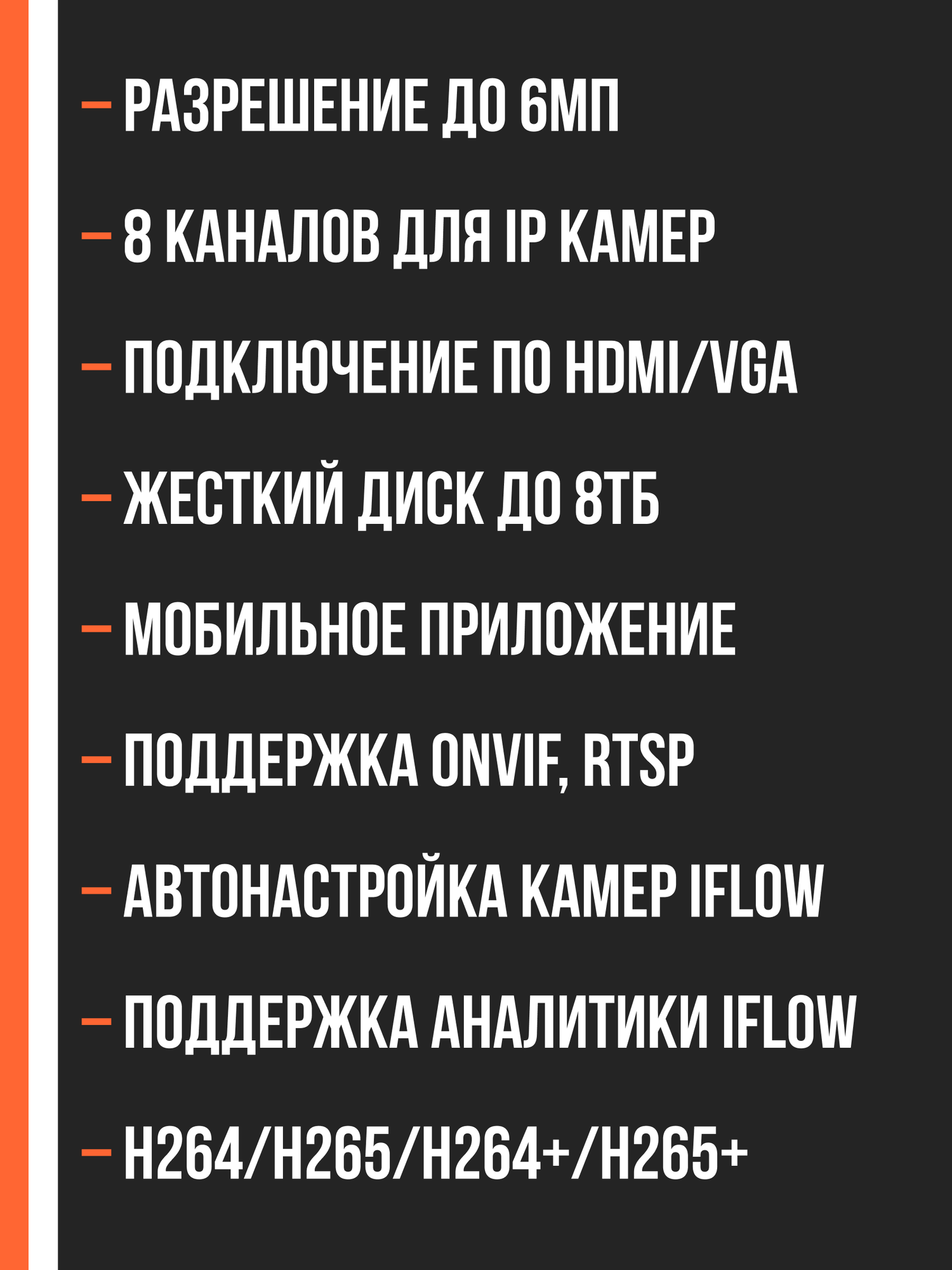 Видеорегистратор iFlow F-NR-108P, сетевой, до 8 камер, 1 SATA, 8 TB информация: