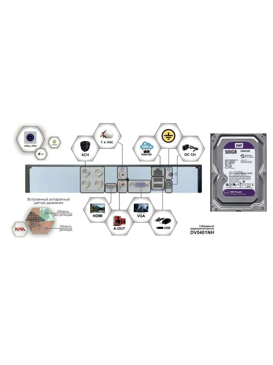 Видеорегистратор видеонаблюдения на 4 камеры до 2мП HDD500Gb информация: