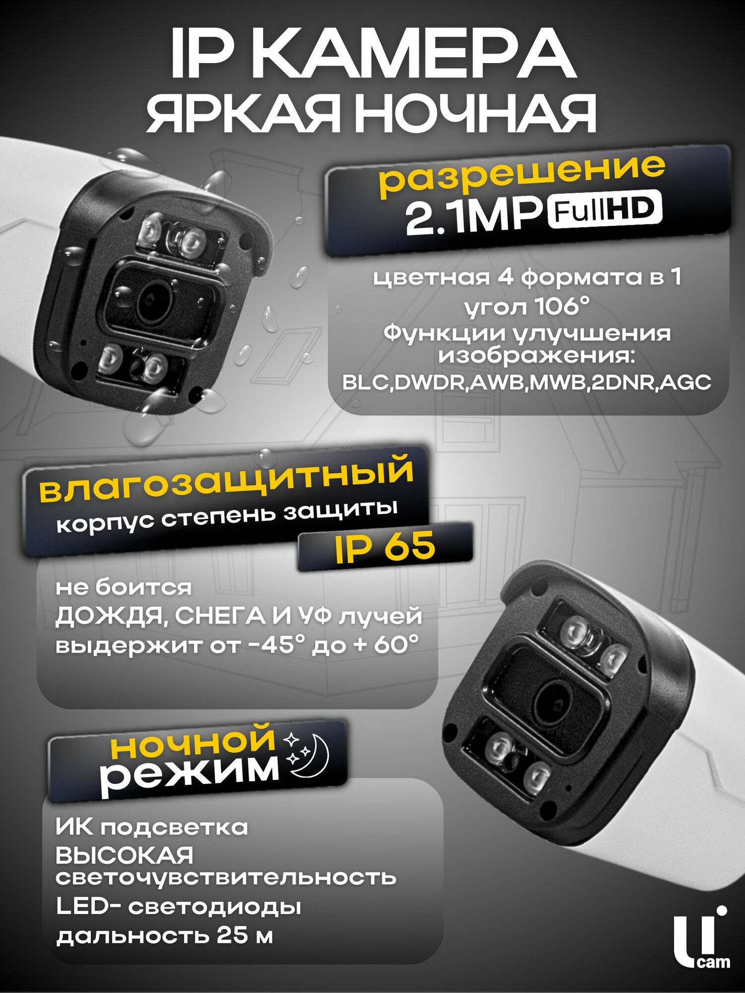 Комплект видеонаблюдения IP, 8 камер 2Мп, Ucam 32 656 ₽