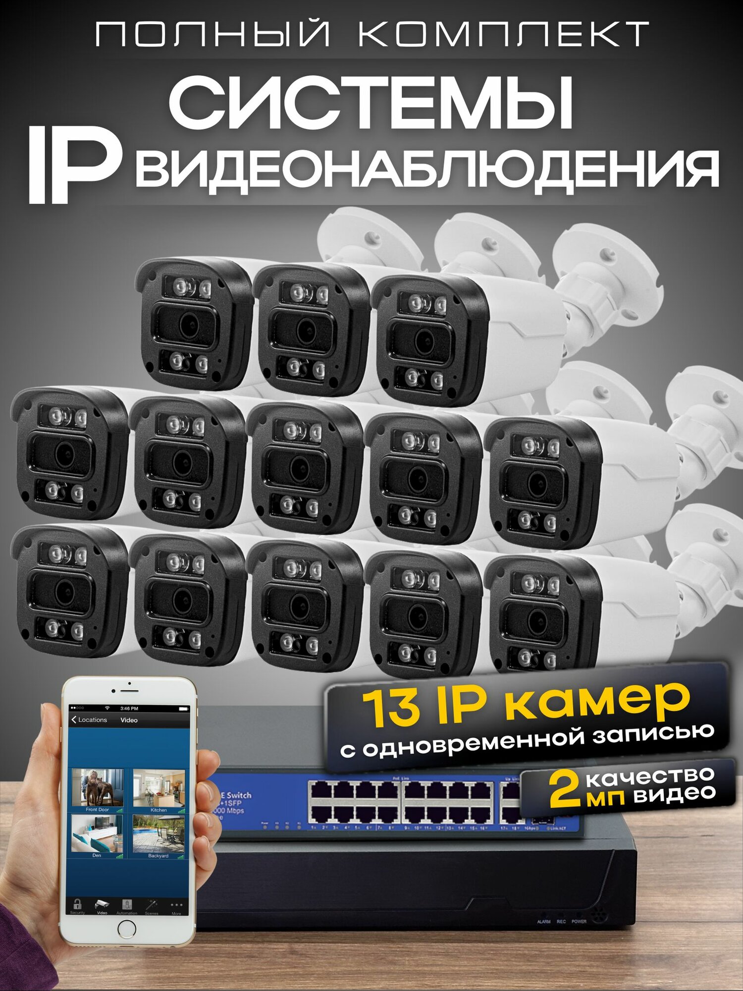 10 цен на Комплект видеонаблюдения IP, 13 камер 2Мп, Ucam