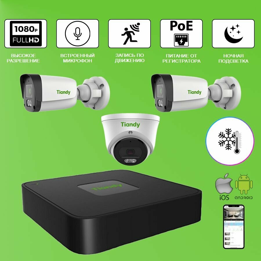 10 цен на Комплект видеонаблюдения Tiandy для улицы/помещения 2Мп 2+1