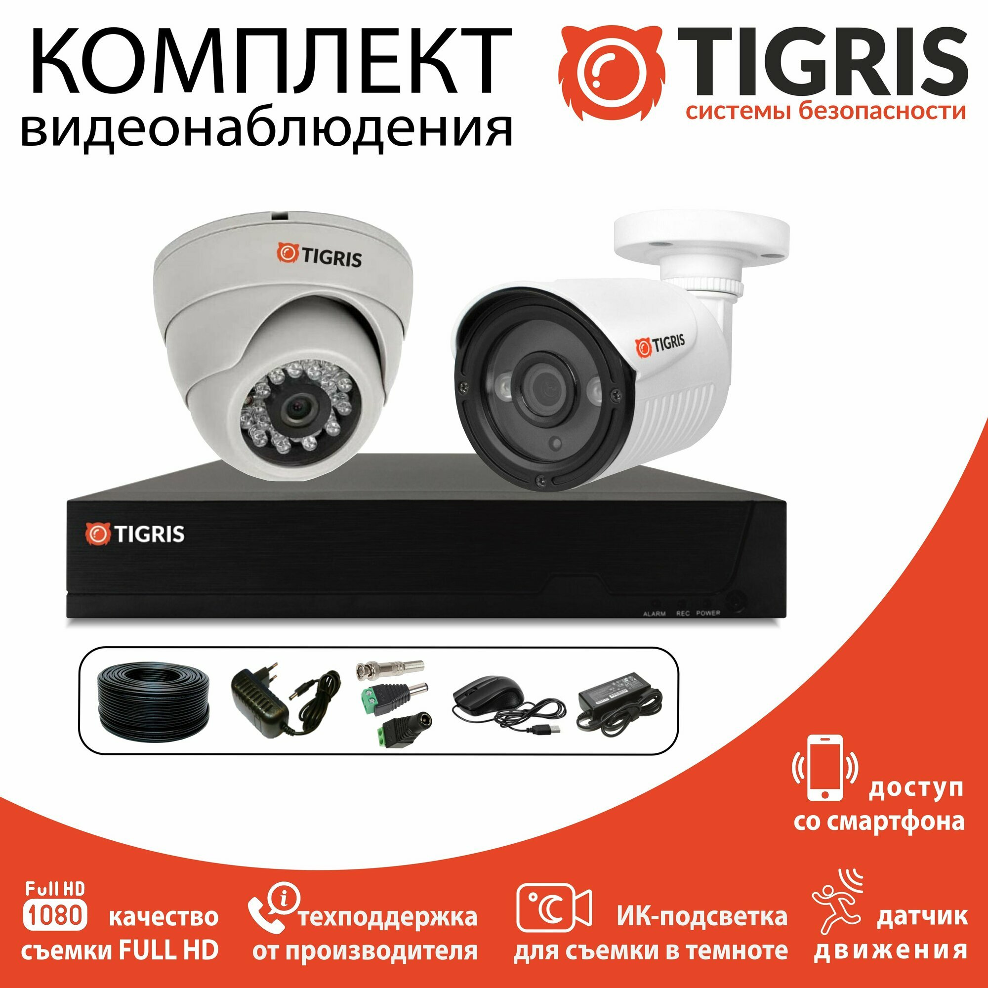 Готовый комплект видеонаблюдения FULL HD на 2 камеры (1 уличную и 1 внутреннюю) информация: