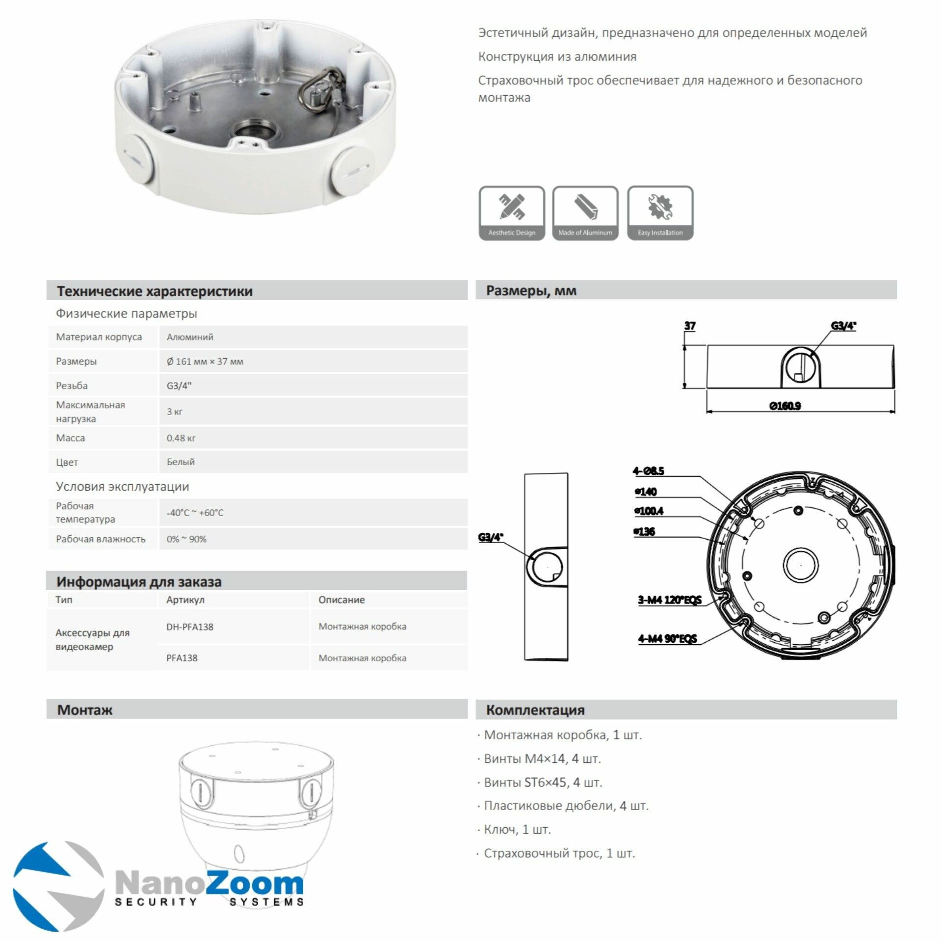 Отзывы на Dahua DH-PFA138 - монтажная распределительная коробка для купольных камер видеонаблюдения