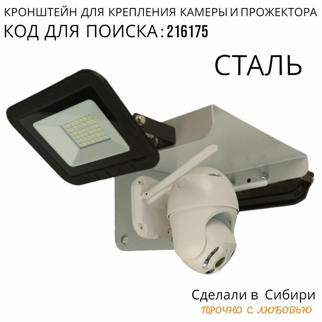 Стальной кронштейн с козырьком для камеры защитит от дождя, сосулек и солнца, с креплением для прожектора POHER-216174 цвет черный 3 200 ₽