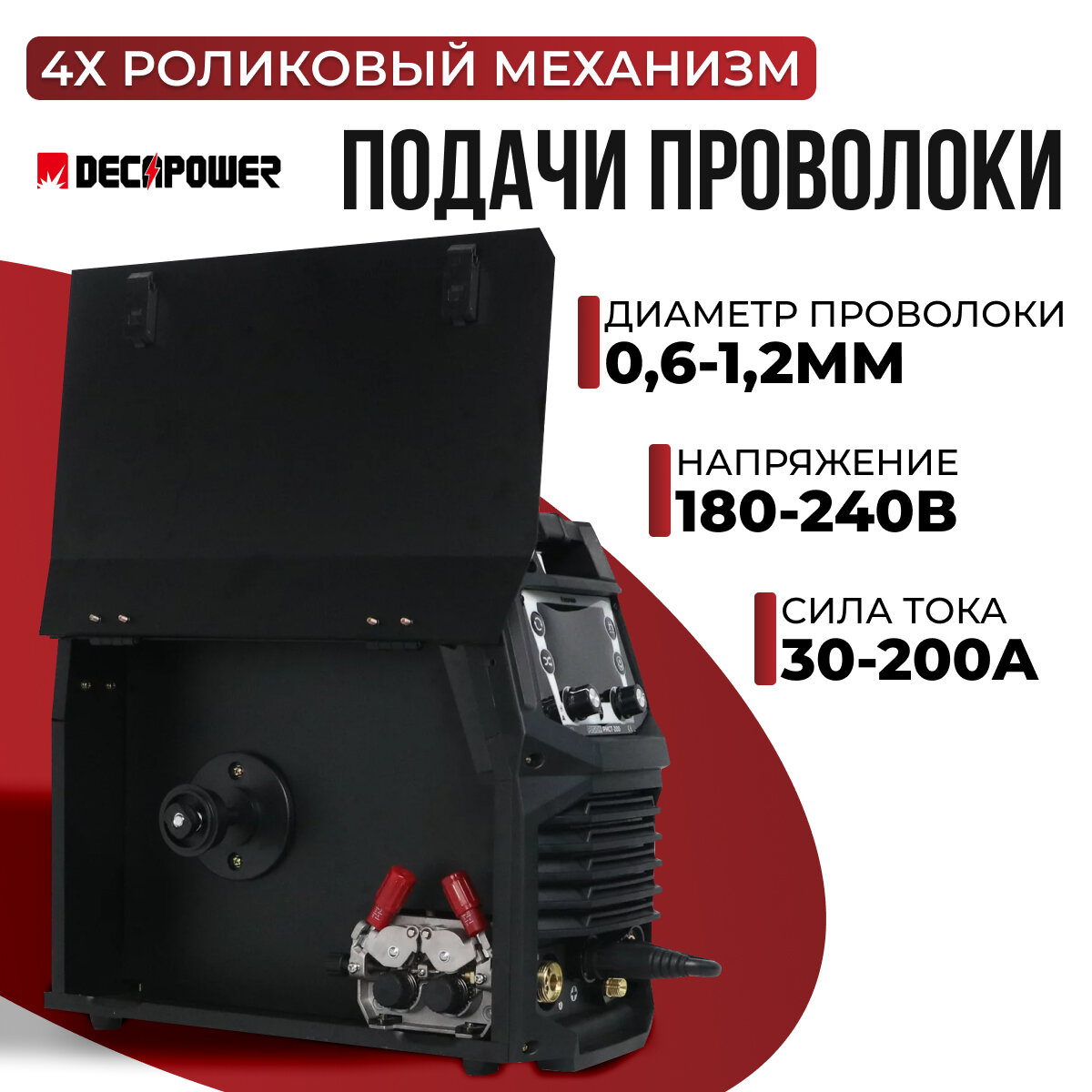 10 цен на Сварочный полуавтомат DECAPOWER FUSION PMT 200 с газом/без газа, 5в1 MIG/MAG/FLUX/MMA/HF TIG - БЕЗ ГОРЕЛОК