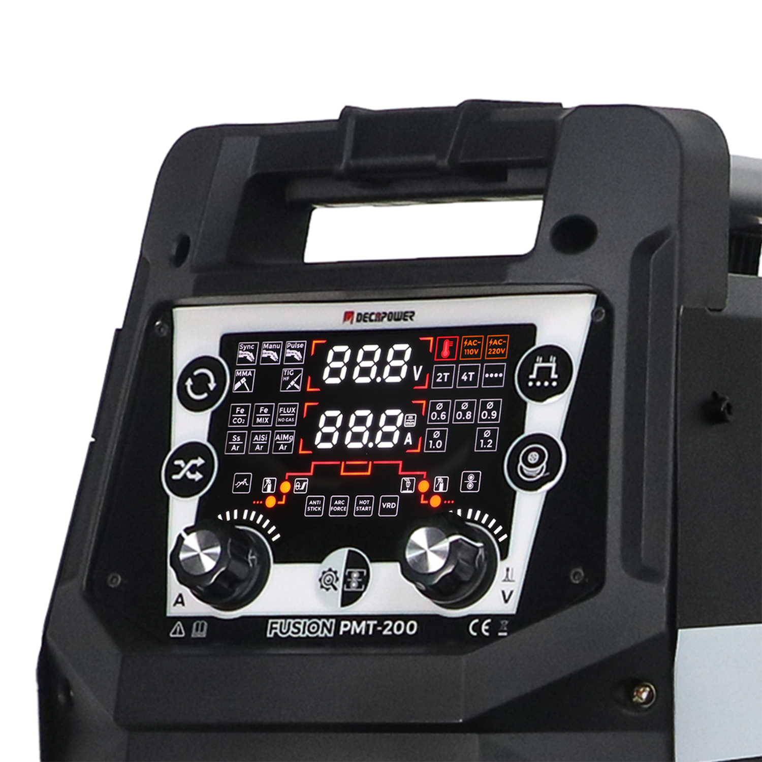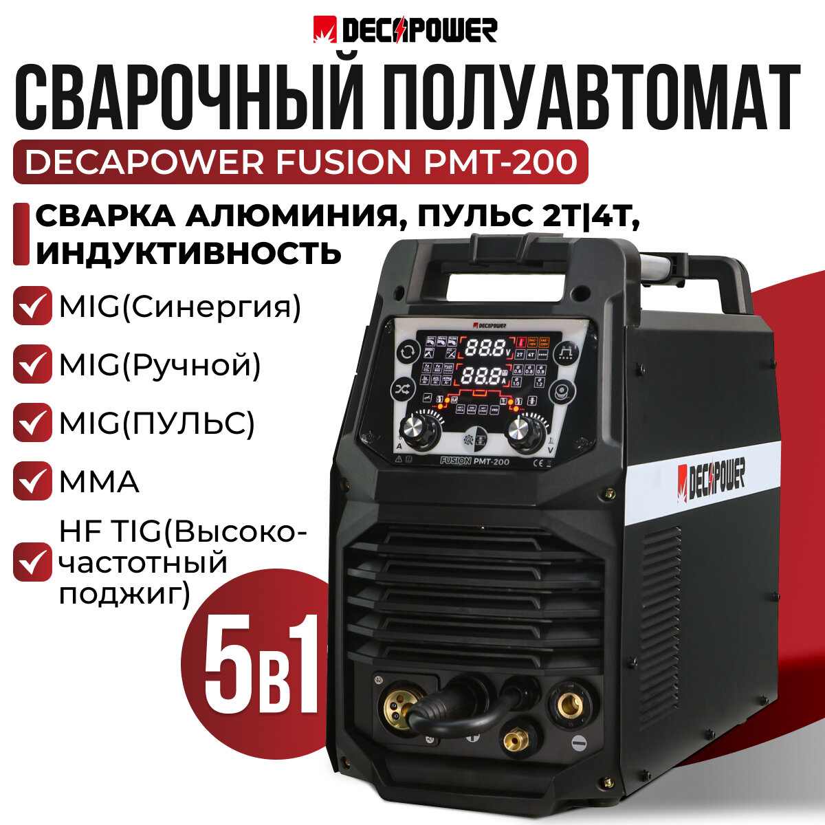 Сварочный полуавтомат DECAPOWER FUSION PMT 200 с газом/без газа, 5в1 MIG/MAG/FLUX/MMA/HF TIG - БЕЗ ГОРЕЛОК информация: