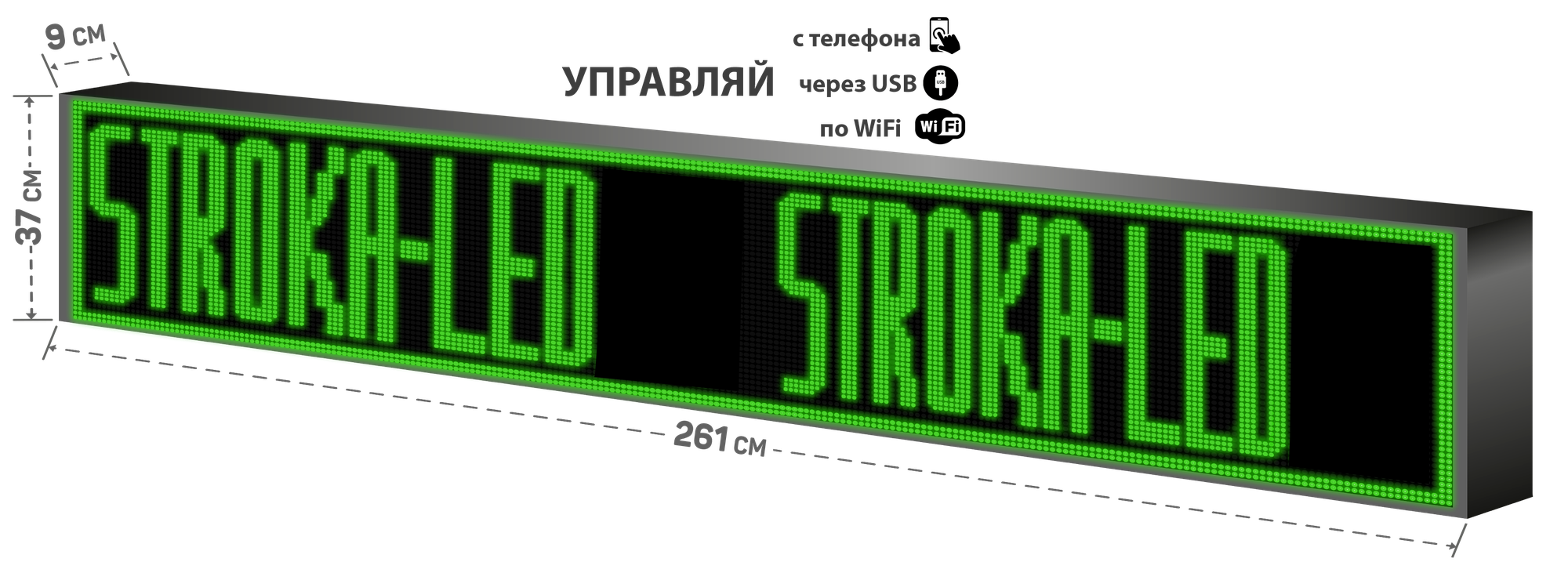 Бегущая строка/ Led /рекламная вывеска/ панель/261х37см /управление с телефона