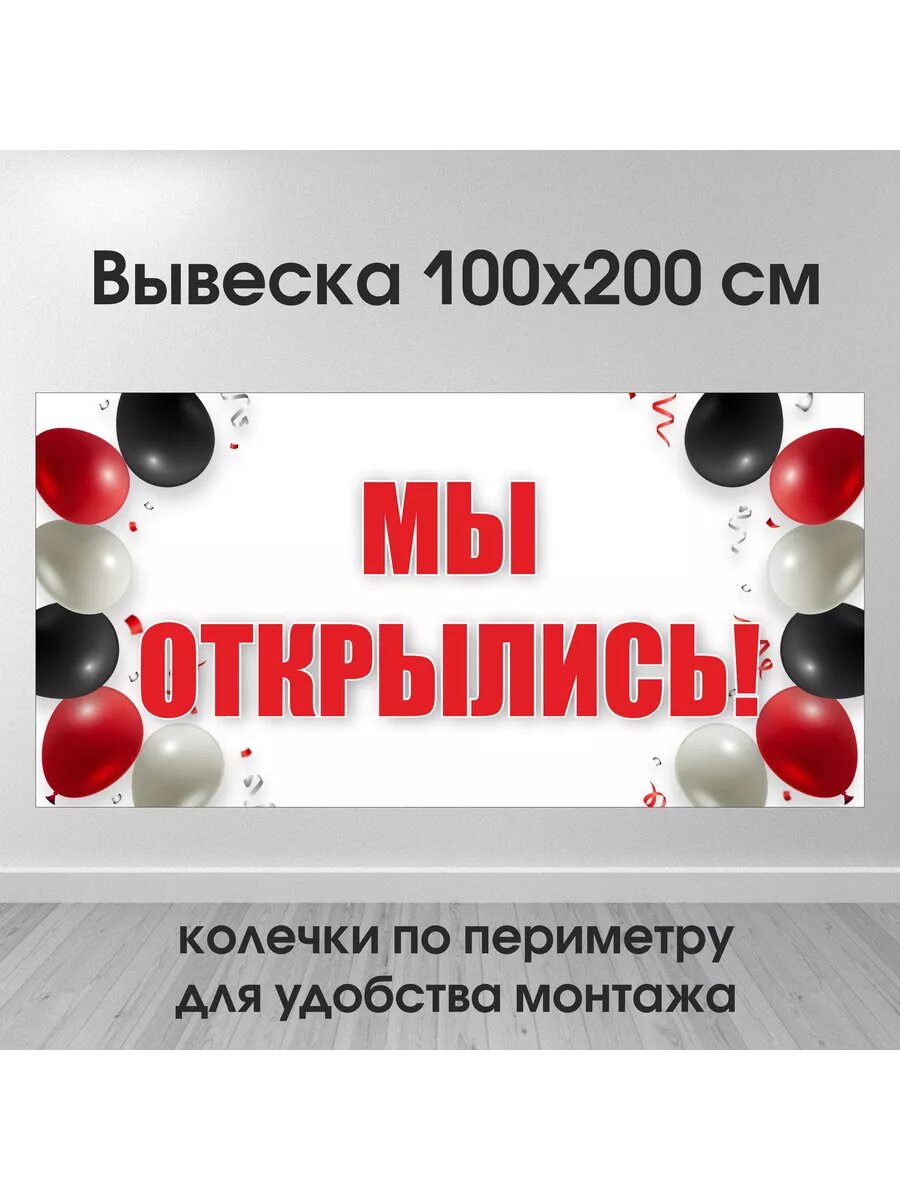 10 цен на Вывеска/баннер "Мы открылись" 1х2 м