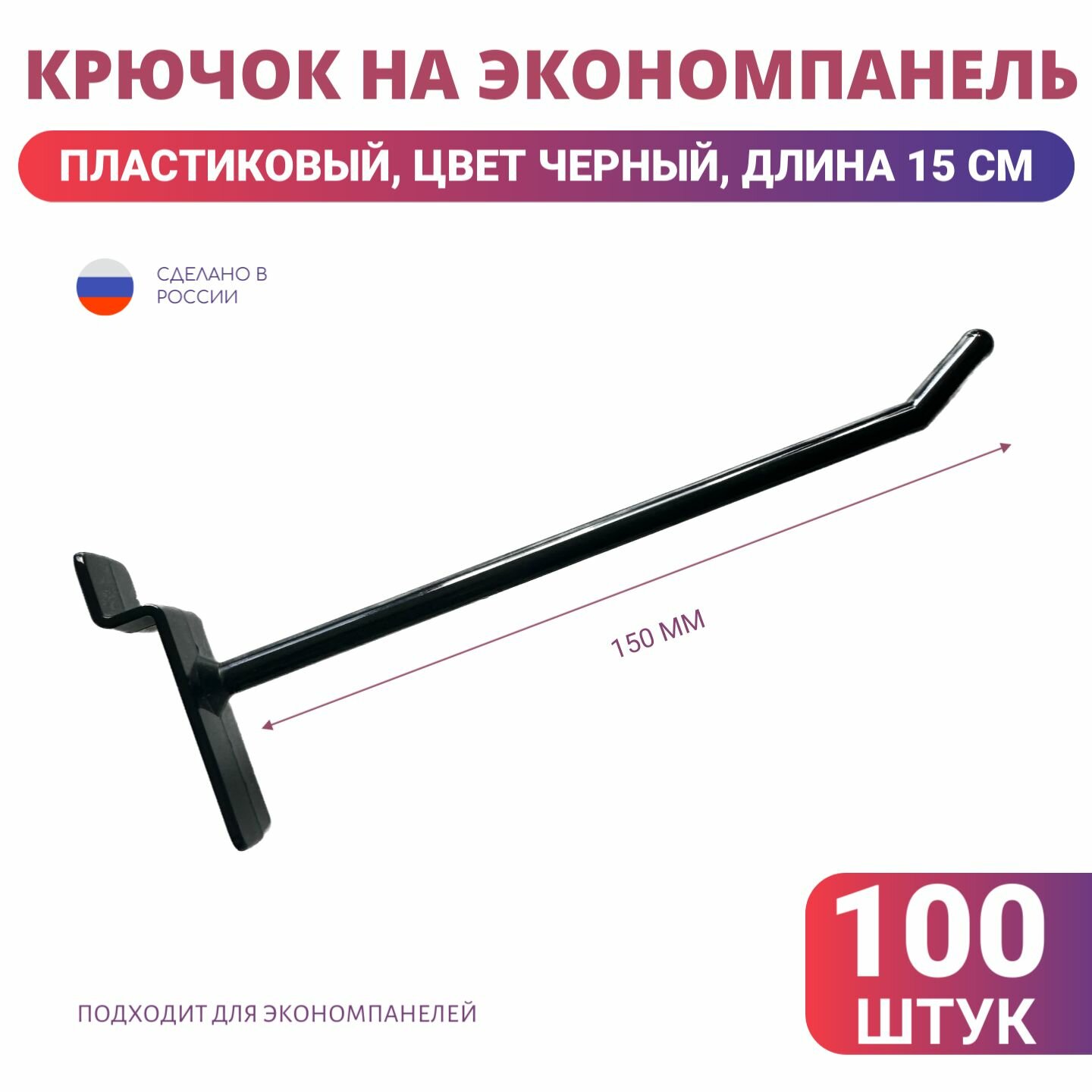Крючки длина 15 см для экономпанелей пластиковые, 100 шт, черные информация: